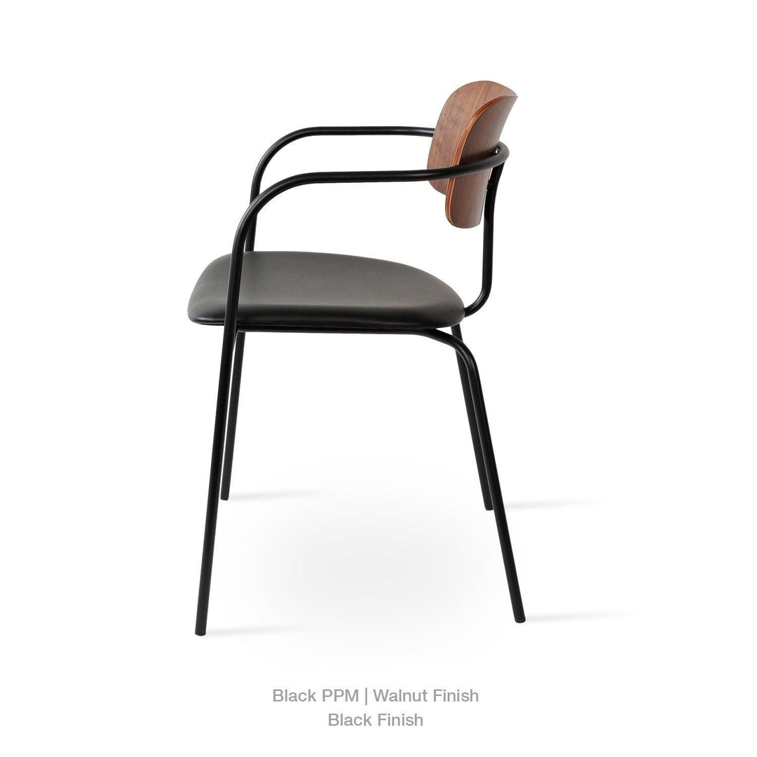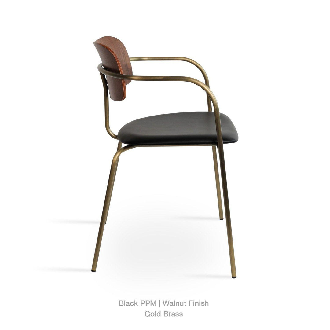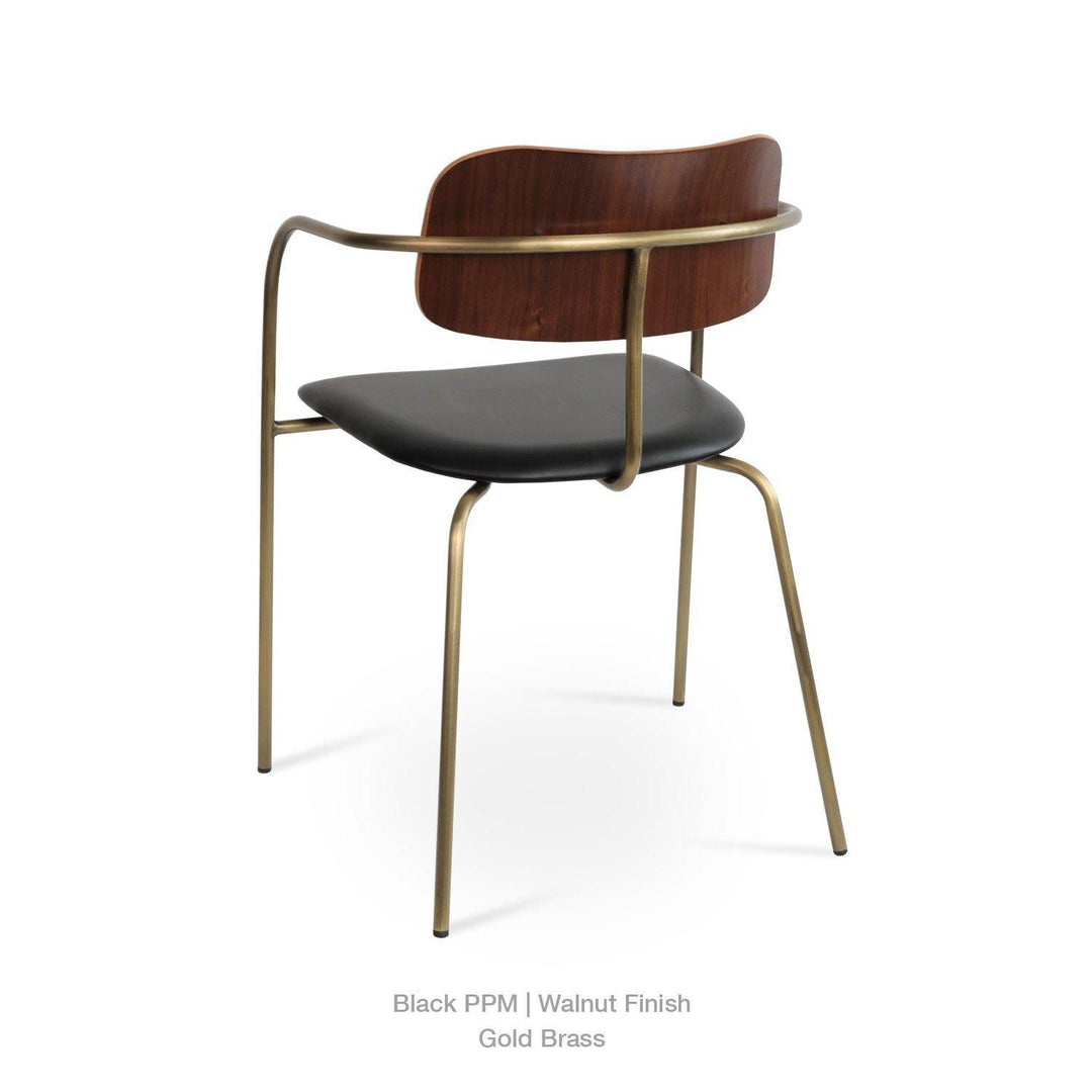Academy is an industrial-style dining chair with a plywood seat and back finished in walnut veneer. The metal legs are finished in matt black and brass gold. Academy is designed by the Industrial Modern team and it's suitable for both residential and commercial use.