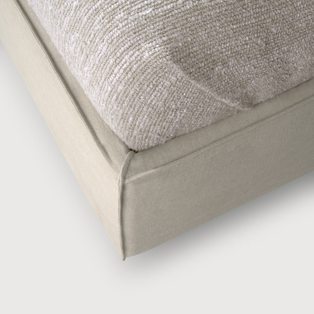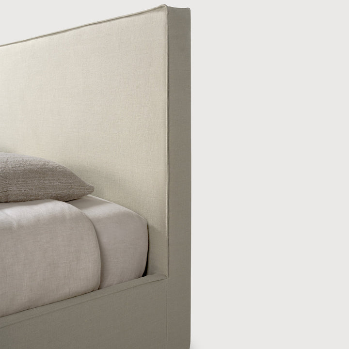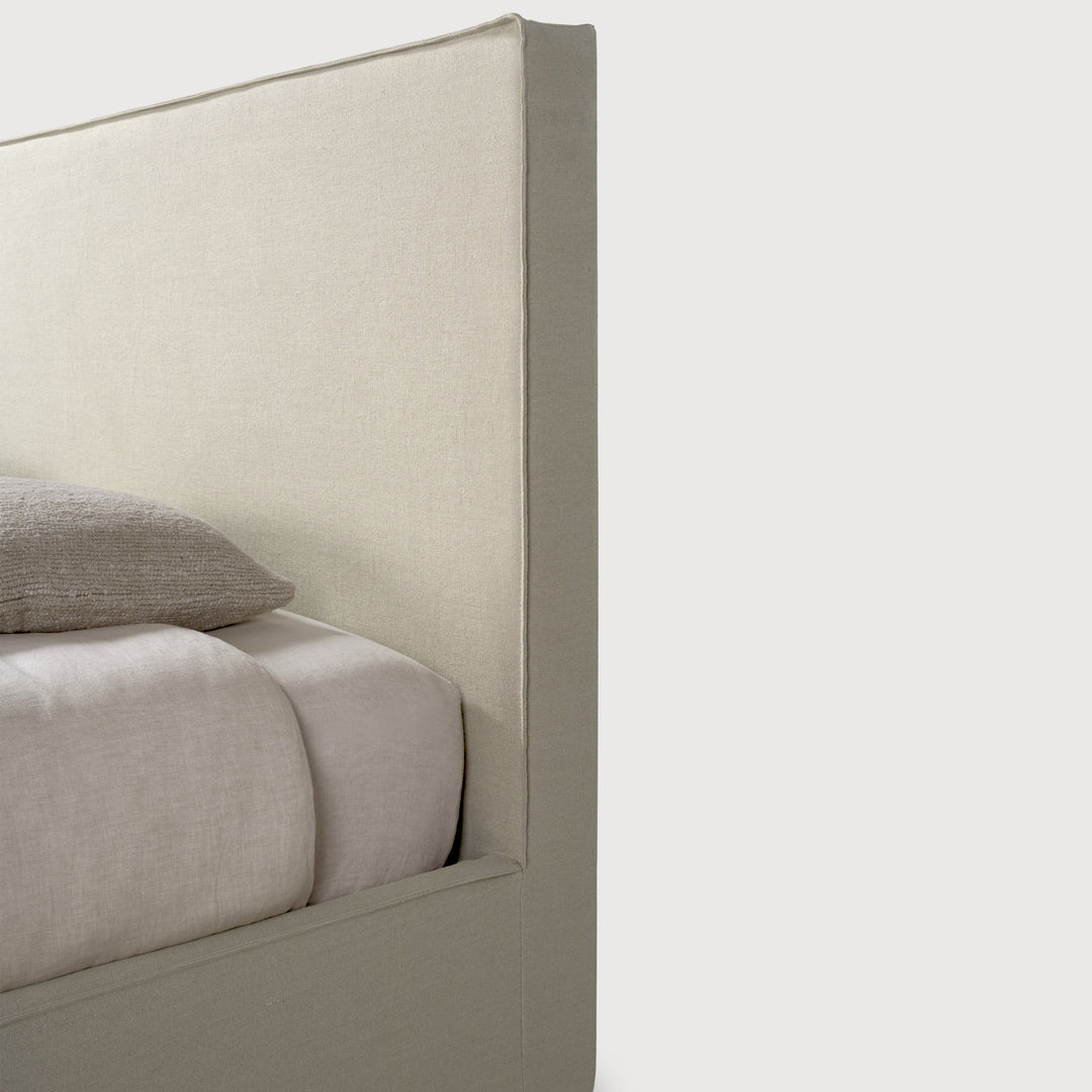 Indulge in the expertly tailored comfort and charm of the Revive Upholstered Bed from Ethnicraft. The linen headboard provides a cozy and inviting feel, with the added bonus of being effortlessly removable for easy cleaning. With beautiful stitched details, this bed adds a touch of elegance and creates a tranquil atmosphere in any bedroom.
