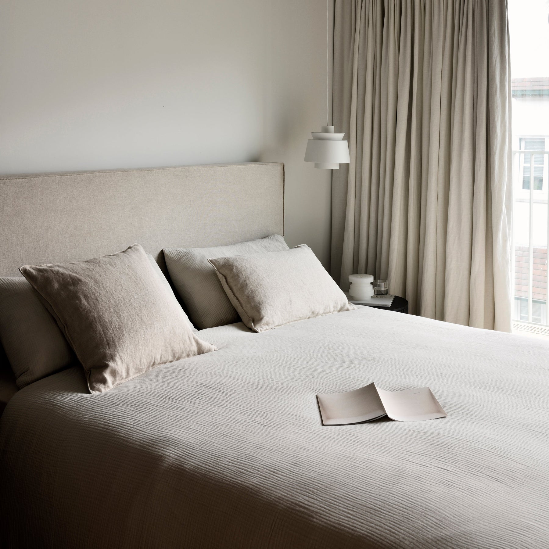 Indulge in the expertly tailored comfort and charm of the Revive Upholstered Bed from Ethnicraft. The linen headboard provides a cozy and inviting feel, with the added bonus of being effortlessly removable for easy cleaning. With beautiful stitched details, this bed adds a touch of elegance and creates a tranquil atmosphere in any bedroom.