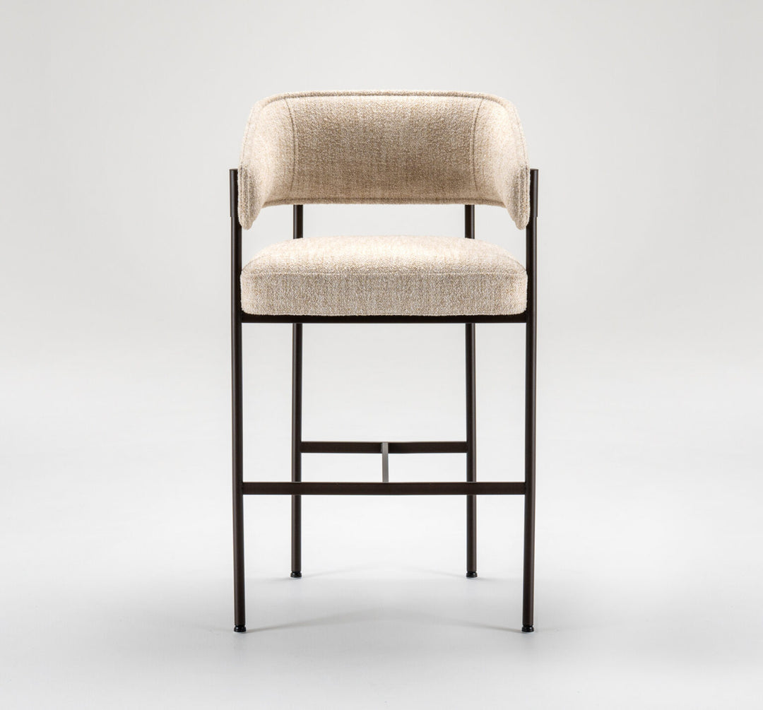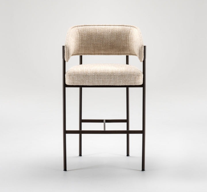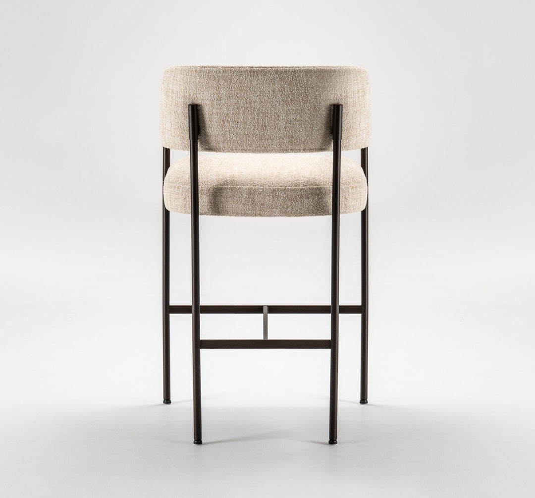 The Alice Barstool by Trica embodies modern and contemporary style, with clean lines and a minimalist structure that fits effortlessly into any space. The stool's armrests are seamlessly integrated into the backrest, offering an enveloping design that adds both elegance and comfort. Built with a fully welded steel frame, the Alice Barstool combines durability with a sleek, sophisticated appearance. Available in both counter and bar heights, the stool is perfect for kitchens, home bars, or dining areas.