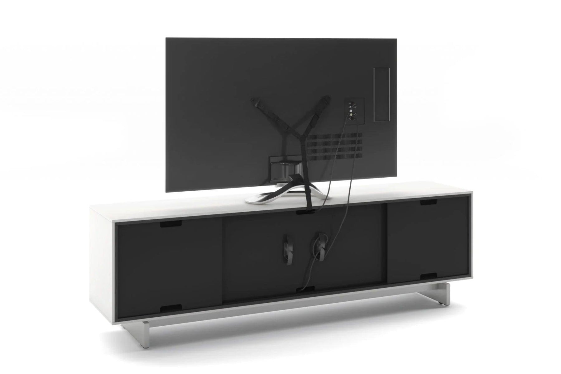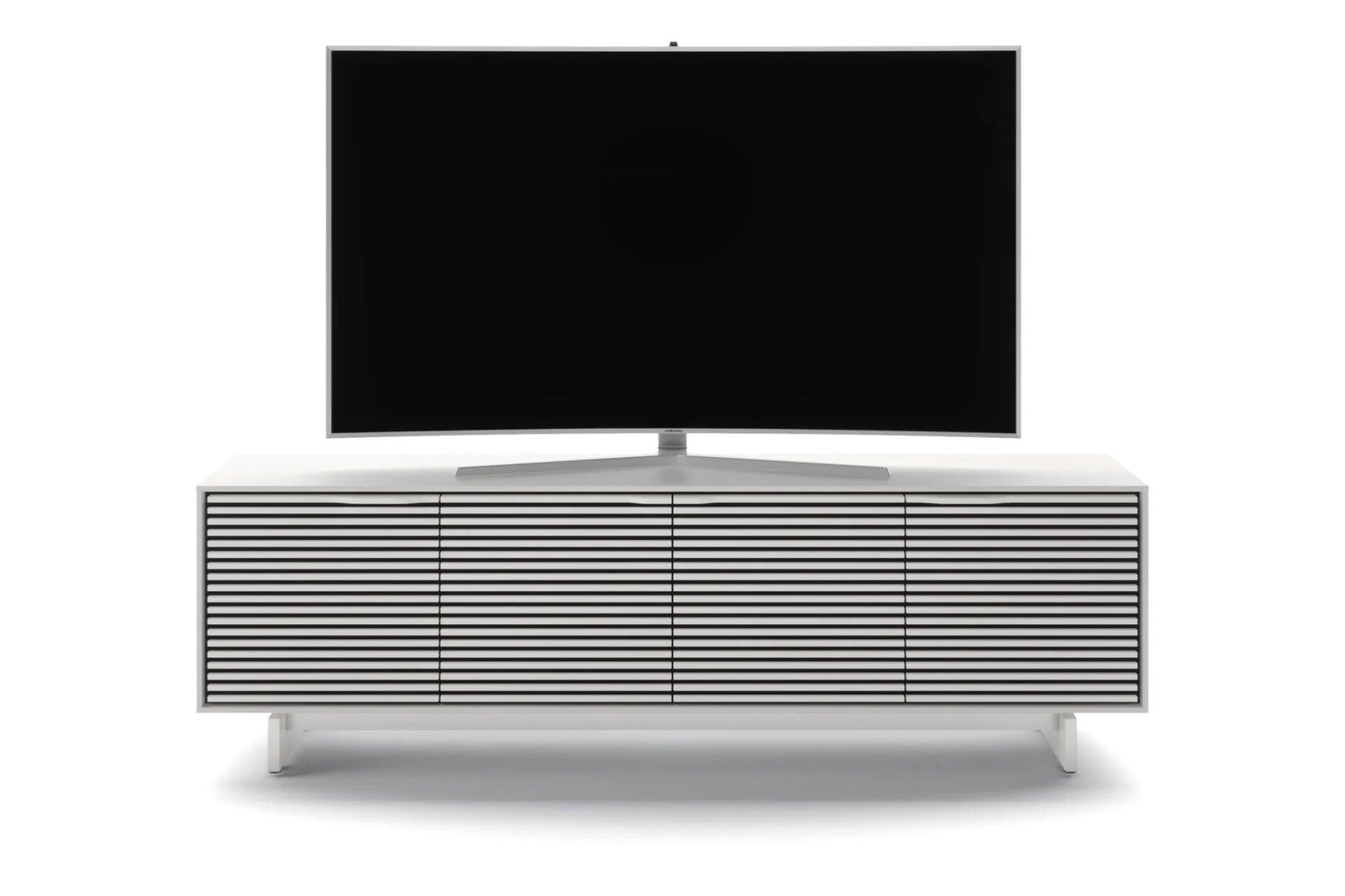 With four spacious drawers and an open shelf, the Align 7479 offers ample room for media components, accessories, and décor items while maintaining a minimalist profile. Its solid wood louvered doors allow sound and remote signals to pass freely, and the integrated cable management system ensures wires stay neatly organized. Adjustable shelves and rear access panels provide functionality, while its Satin White finish and sculpted base elevate any entertainment setup.