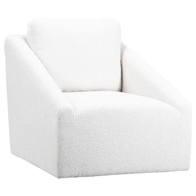 Indulge in supreme comfort and luxury with the Andrew Swivel Chair by Dovetail. With a hardwood frame for sturdy support, this chair is upholstered in plush faux sheepskin, giving your space a touch of glam while ensuring optimum comfort. Its swivel base allows for easy and effortless rotation. Available in three different finishes - Natural White, Olive Green, and Light Brown - you can choose the one that best complements your decor.