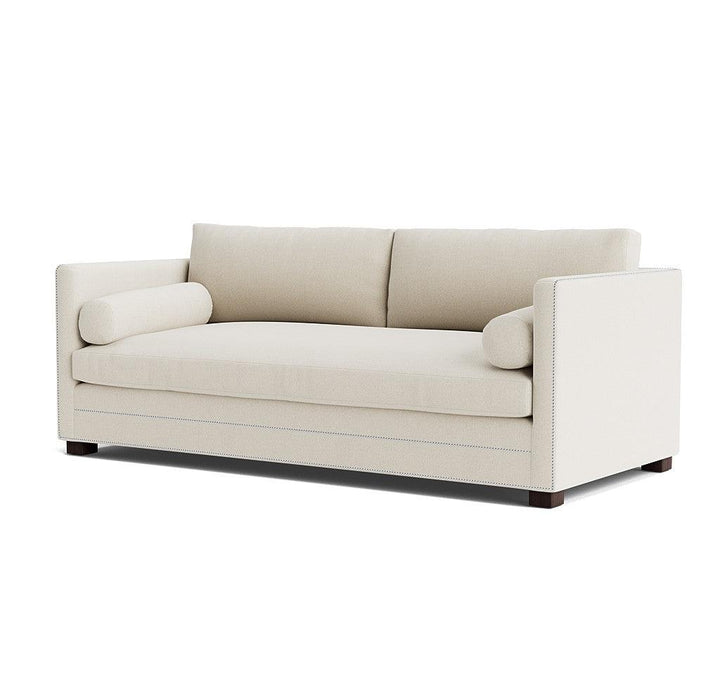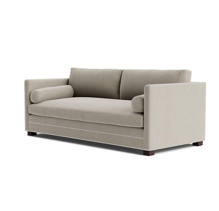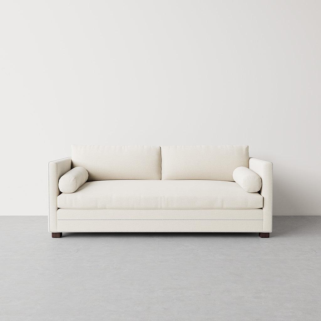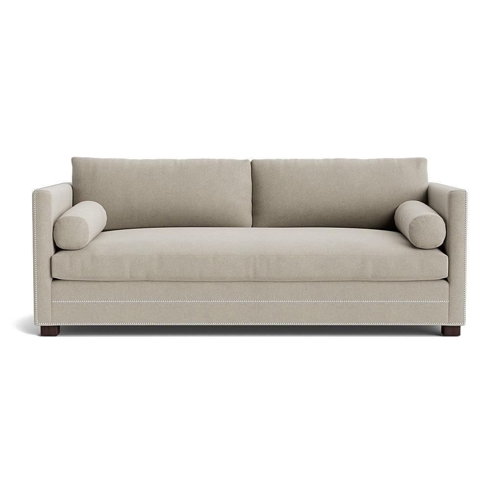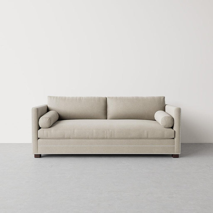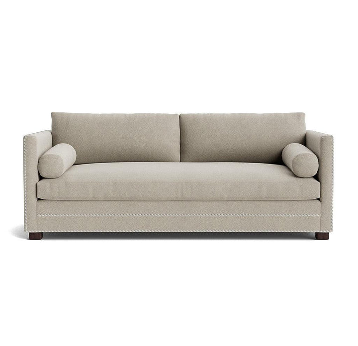 Step into a world where casual elegance meets supreme comfort with the Barrot Sofa. Every inch of this sofa exudes sophistication while promising unparalleled relaxation. From the slender, shelter arms adorned with stylish bolster pillows to the expansive, plush bench seat, Barrot seamlessly brings together the best of both design and comfort worlds. A unique feature to this sofa is the optional nailhead trim which lends a touch of classical detail to its modern silhouette. Whether placed in a cozy corner or as the centerpiece of your living space, Bardot ensures that it stands out with its subtle charm. With two-width options and exclusive fabric upholstery, this handcrafted beauty is a tribute to artisanal craftsmanship and modern design.
