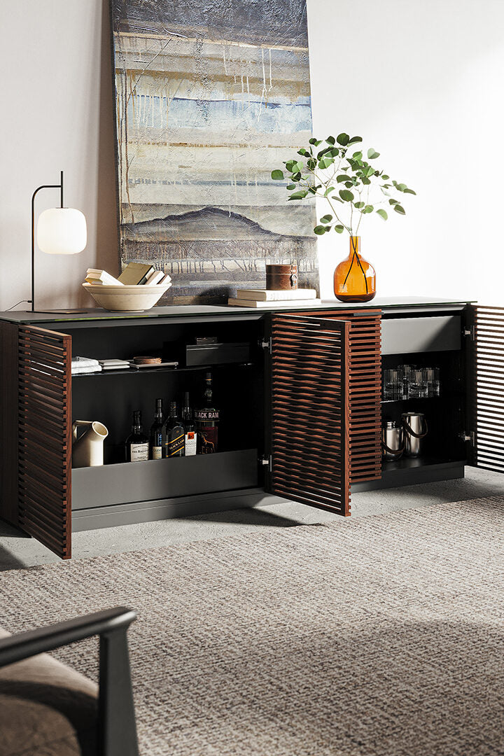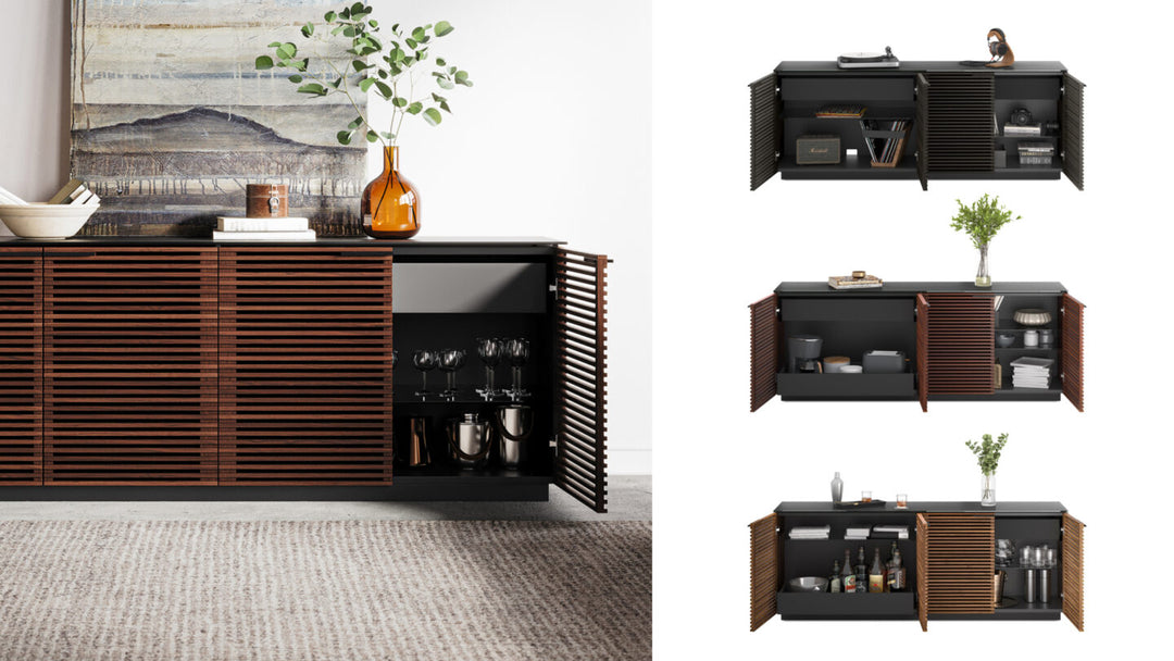 The Corridor 8109 4-Door Storage Credenza blends ample storage with mid-century modern aesthetics, making it the perfect statement piece for any sophisticated space. Designed for both style and function, this credenza features adjustable shelves, cable management, and soft-close doors. With customizable storage options, it's an ideal solution for organizing kitchen essentials, household items, or serving as a modern sideboard or buffet.