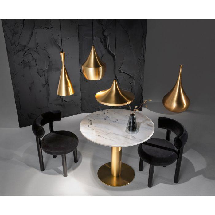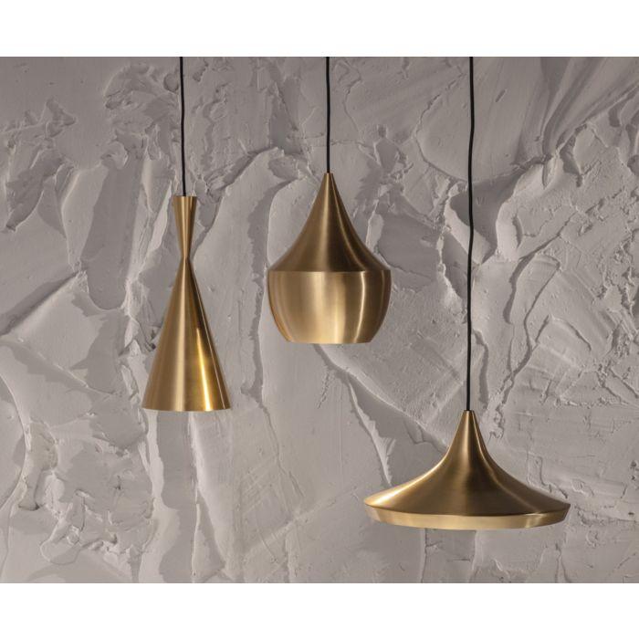 The Beat Fat is a medium-sized ceiling light in brass and features a matching warm, golden interior. Made from hand-spun brass sculpted by artisan craftsmen in Northern India, the creation of this Beat light is part of an ancient process that takes four days to complete. Featuring our integrated LED module, the beaten interior is re-purposed to refract and reflect a soft and warm luminosity.