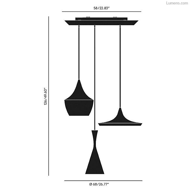 The Beat Trio Round Multi-Light LED Pendant by Tom Dixon is a stunning lighting fixture that features three shades arranged in a cluster. The shades are made of hand-spun brass, and their interior is finished with a warm golden hue that creates a soft and inviting glow. The contrasting exterior finish adds a touch of elegance and sophistication to any space. The LED technology provides energy efficiency and long-lasting illumination, making this pendant a practical and stylish choice for any modern interior design.
