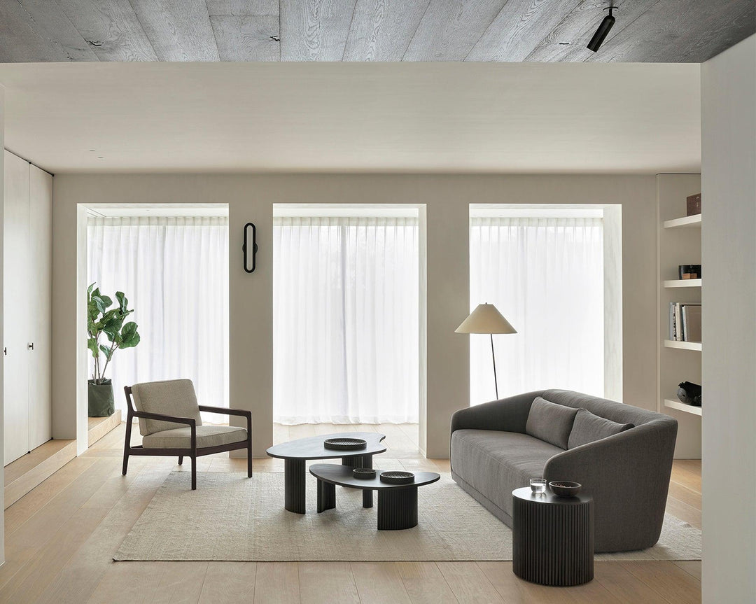 The Boomerang Coffee Table, designed by Alain van Havre, brings a playful yet sophisticated touch to any living area. Its distinctive pebble-shaped top rests atop a gracefully folded base, combining form and function in a stunning design. Whether used individually or paired with its companion piece for a layered look, this coffee table is the perfect statement piece that complements both modern and classic décor styles. Available in three finishes—Natural Oak, Teak Brown, and Mahogany Dark Brown—this table set is both versatile and captivating.