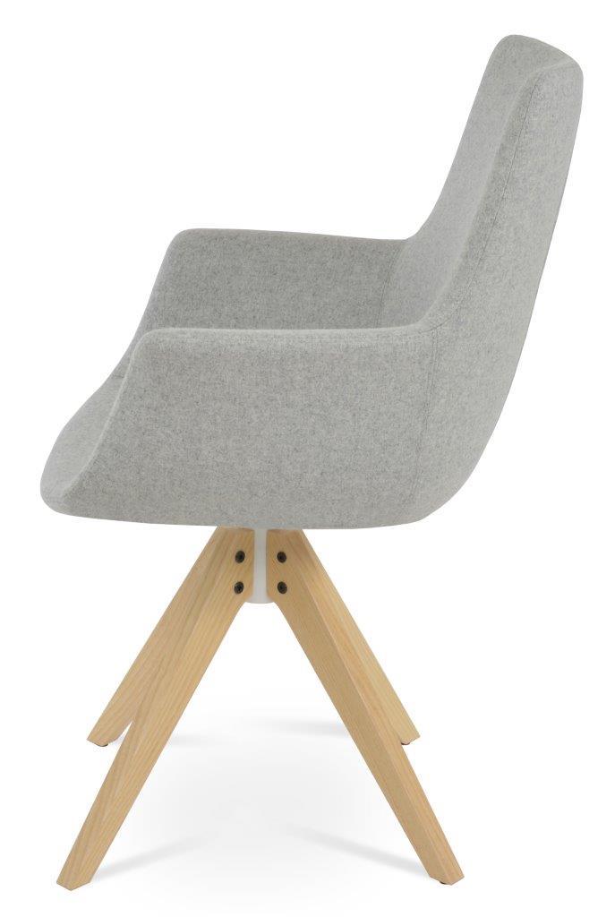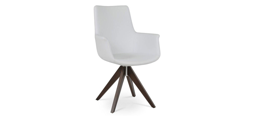 The Bottega Pyramid Swivel HB is a contemporary dining chair with a comfortable upholstered seat and backrest on a swivel base. The center has a steel structure with “S” shape springs for extra flexibility and strength. The steel base can be finished in black or white powder coating. The chair is suitable for both residential and commercial use. Bottega Pyramid Swivel HB is designed by Tayfur Ozkaynak and produced by Soho Concept.