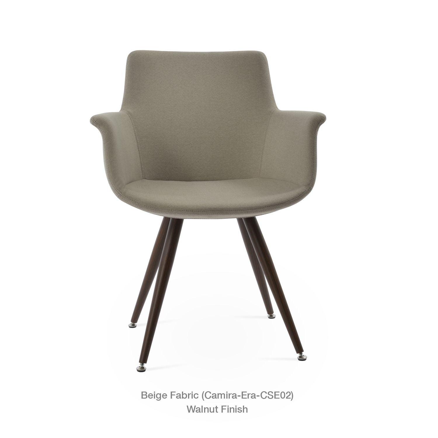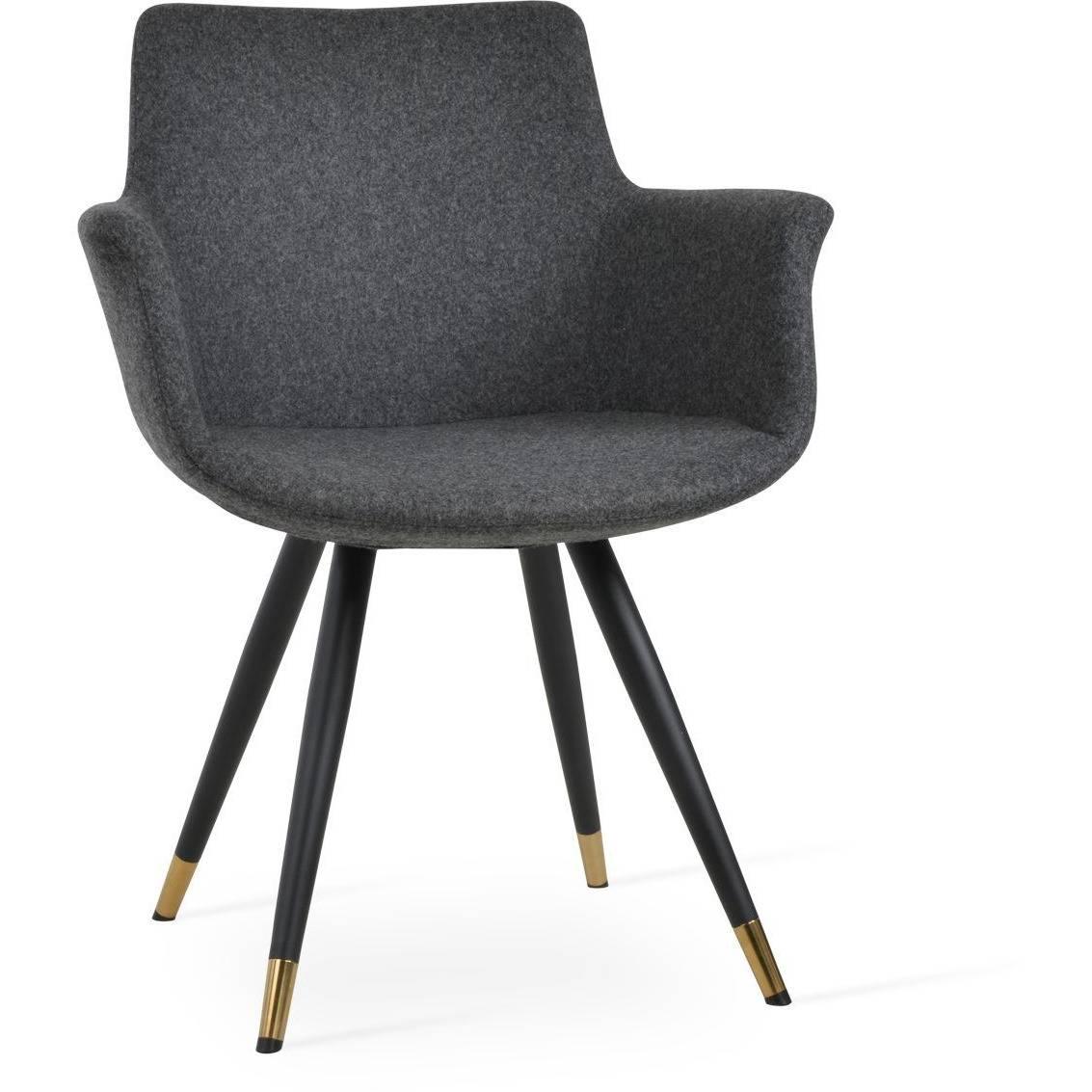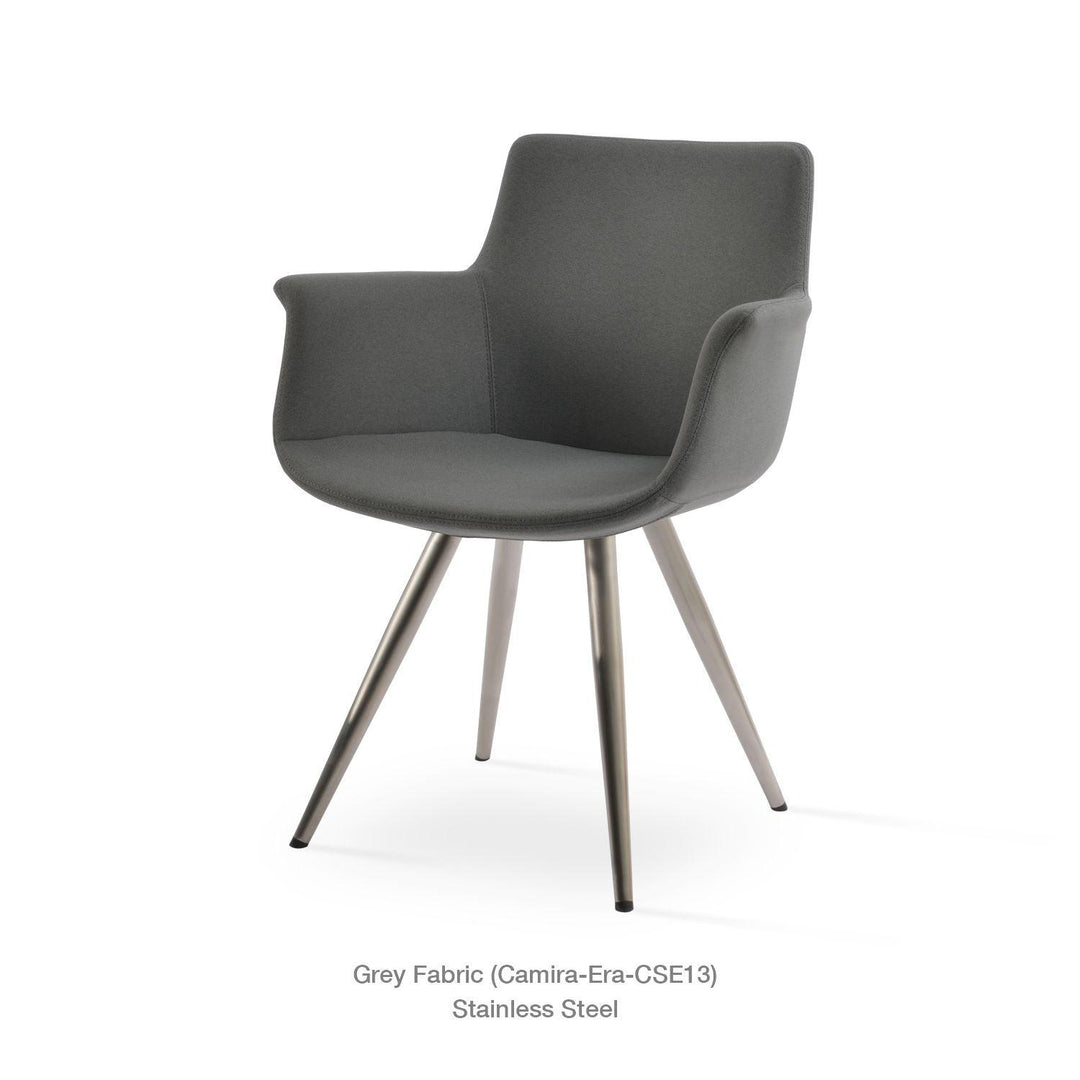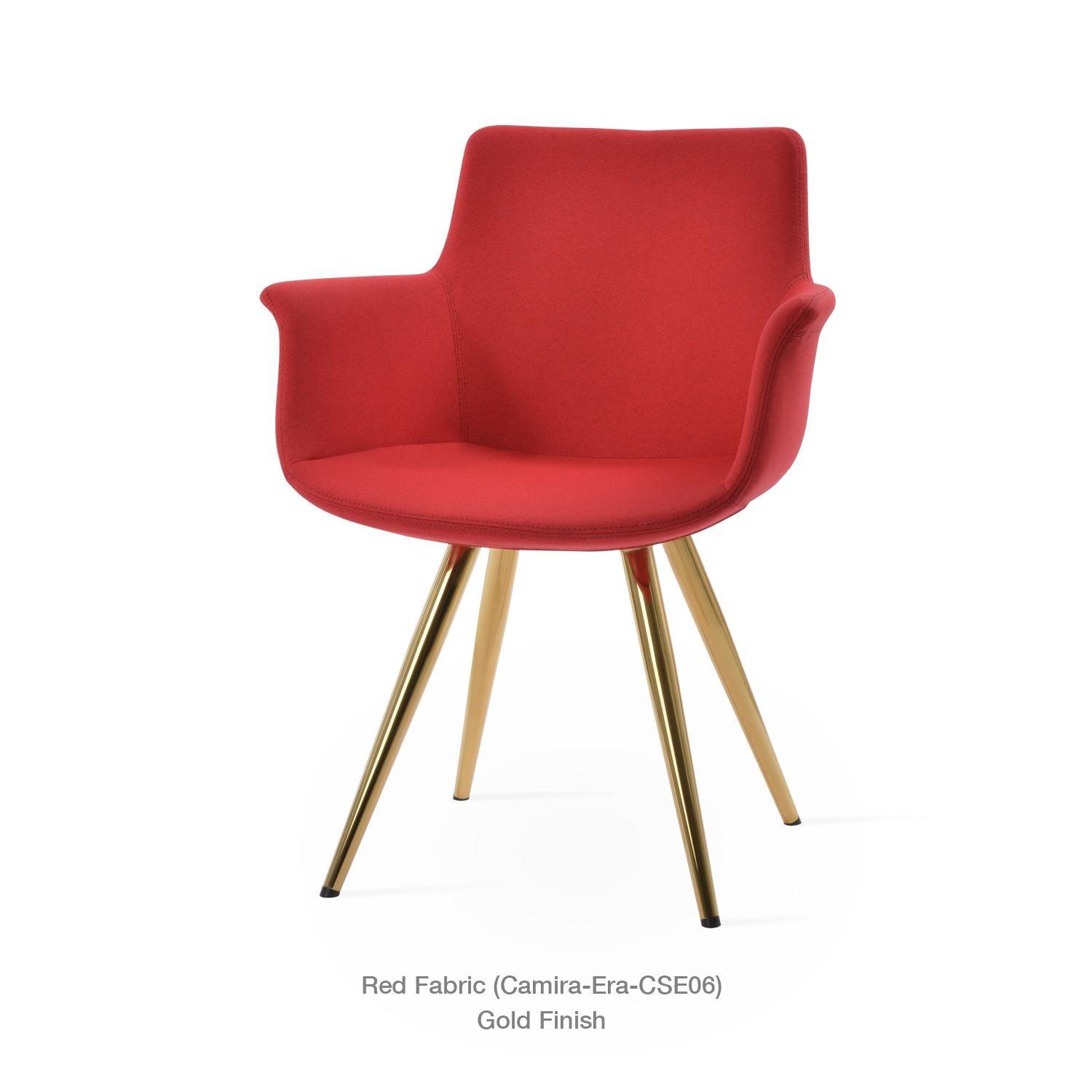 Bottega Star is a unique dining chair with a comfortable upholstered seat and backrest on a steel base available in various base options. Star Ring is available in Black Powder with Gold Brass rings and Walnut Finish with S. Steel Polished rings. Each leg is tipped with a plastic glide screwed into the foot. The seat has a steel structure with “S” shape springs for extra flexibility and strength. This steel frame is molded by injecting polyurethane foam. Bottega seat is upholstered with a removable zipper enclosed leather, PPM, leatherette, or wool fabric slipcover. This contemporary chair is suitable for both residential and commercial use.