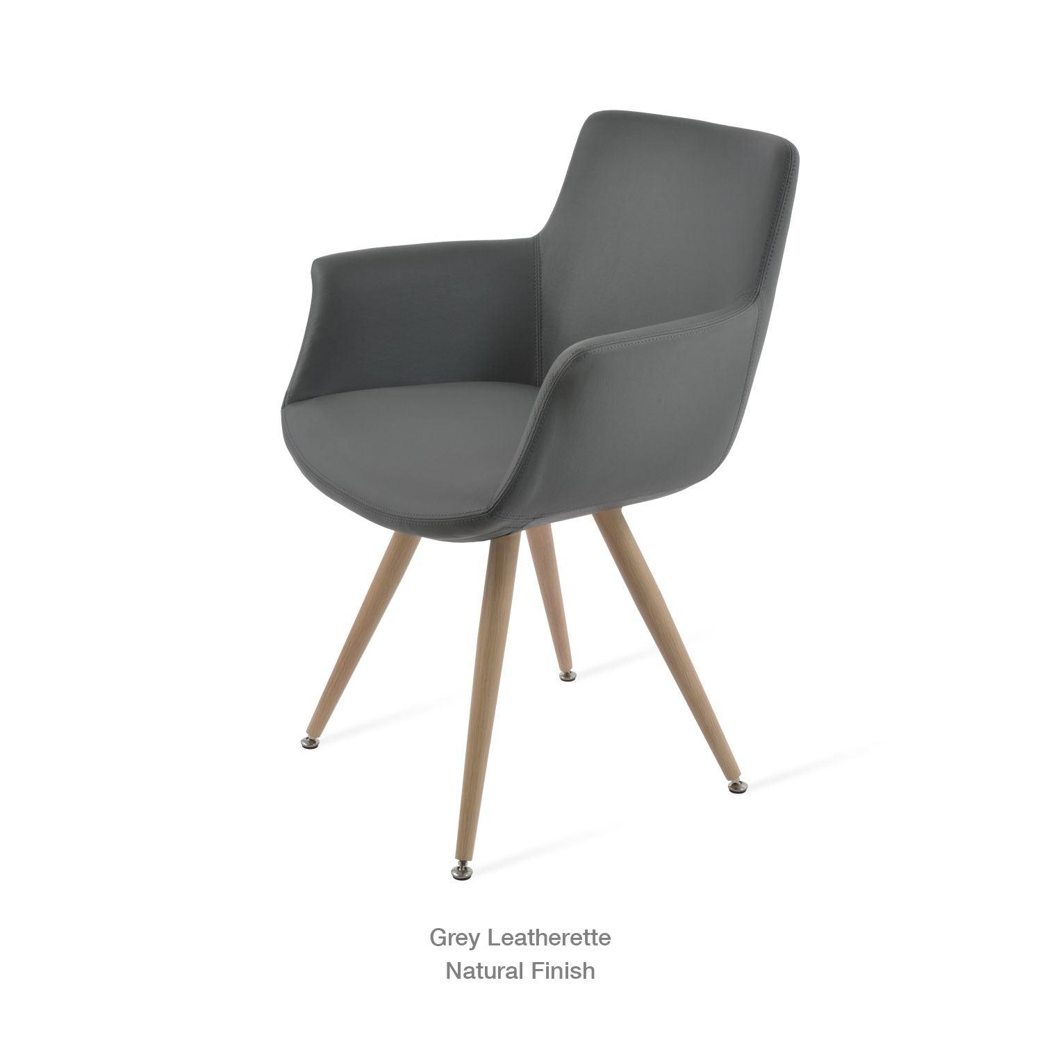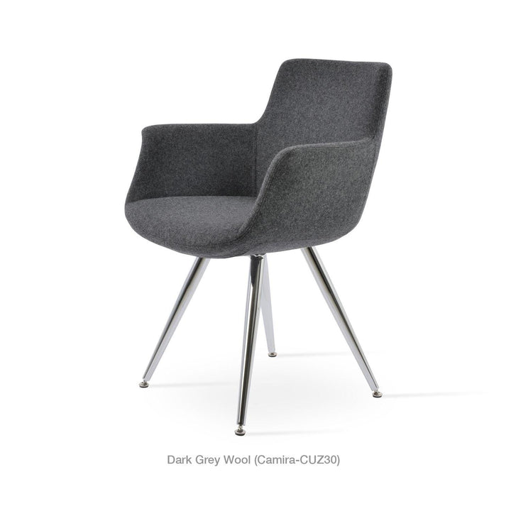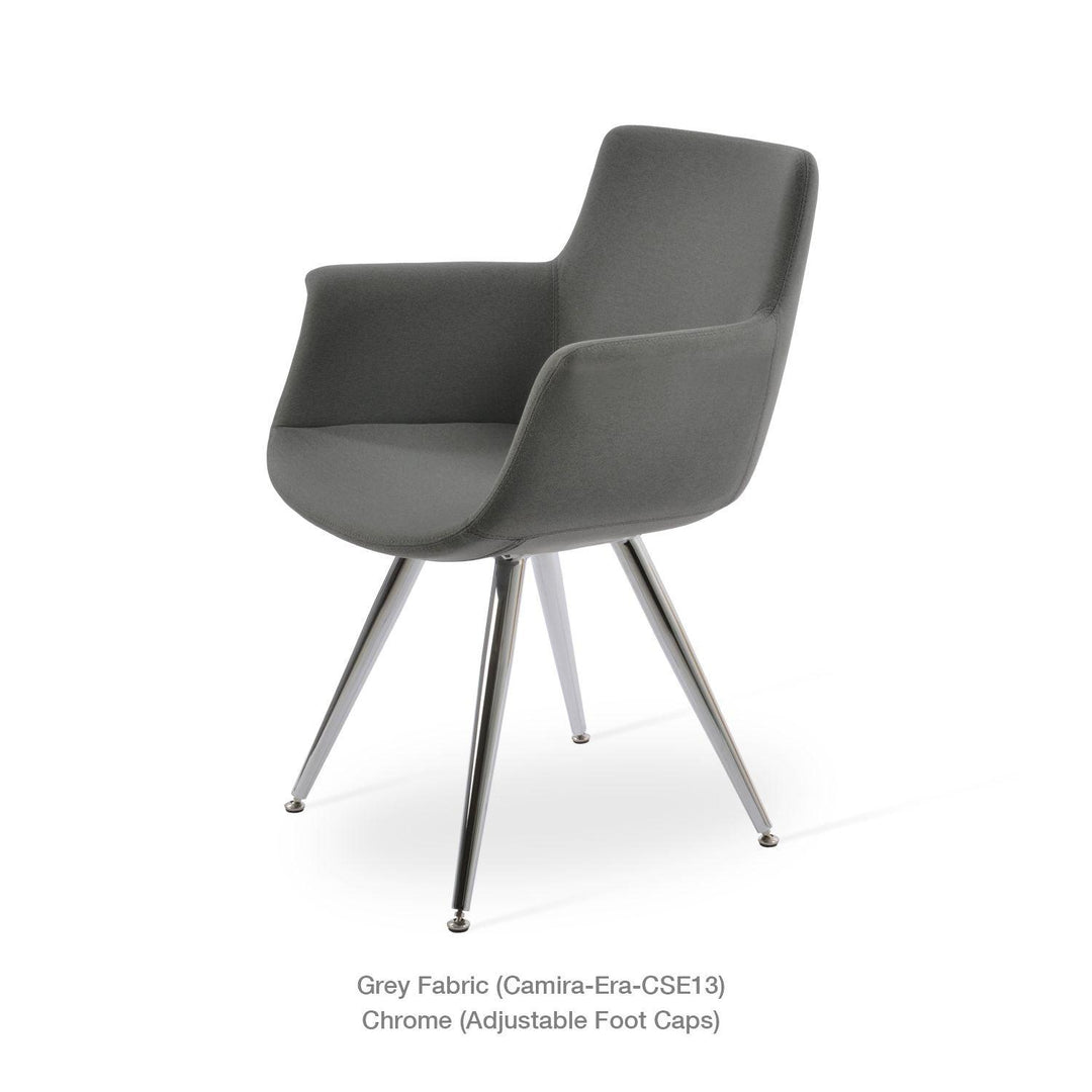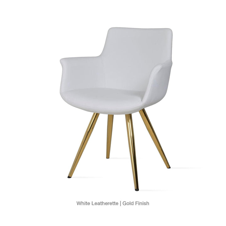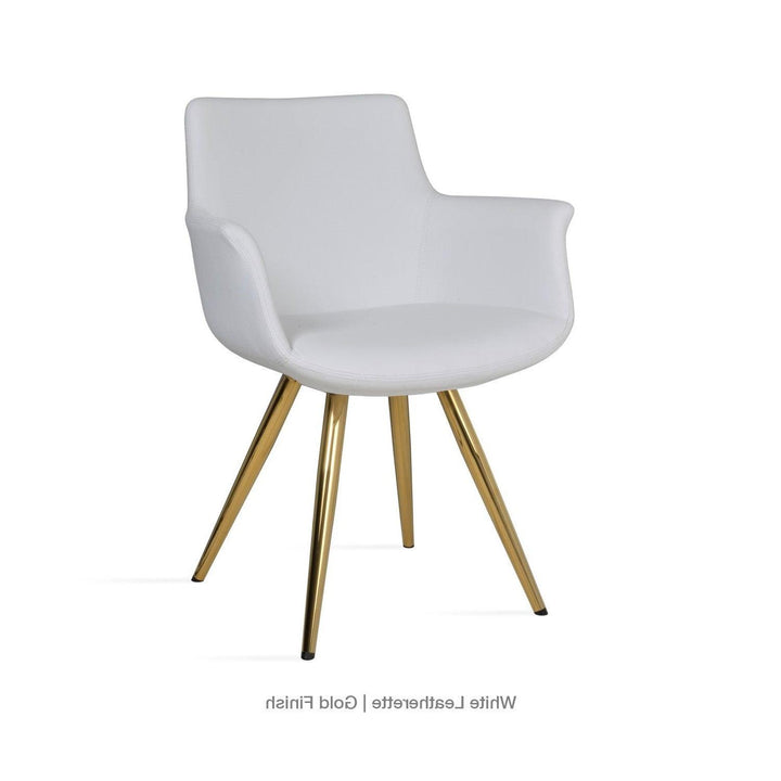Bottega Star is a unique dining chair with a comfortable upholstered seat and backrest on a steel base available in various base options. Star Ring is available in Black Powder with Gold Brass rings and Walnut Finish with S. Steel Polished rings. Each leg is tipped with a plastic glide screwed into the foot. The seat has a steel structure with “S” shape springs for extra flexibility and strength. This steel frame is molded by injecting polyurethane foam. Bottega seat is upholstered with a removable zipper enclosed leather, PPM, leatherette, or wool fabric slipcover. This contemporary chair is suitable for both residential and commercial use.