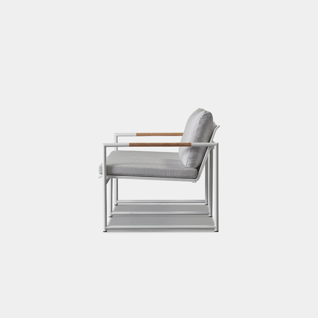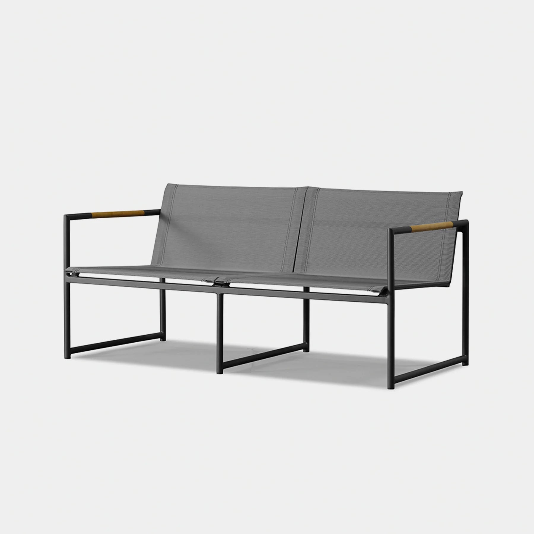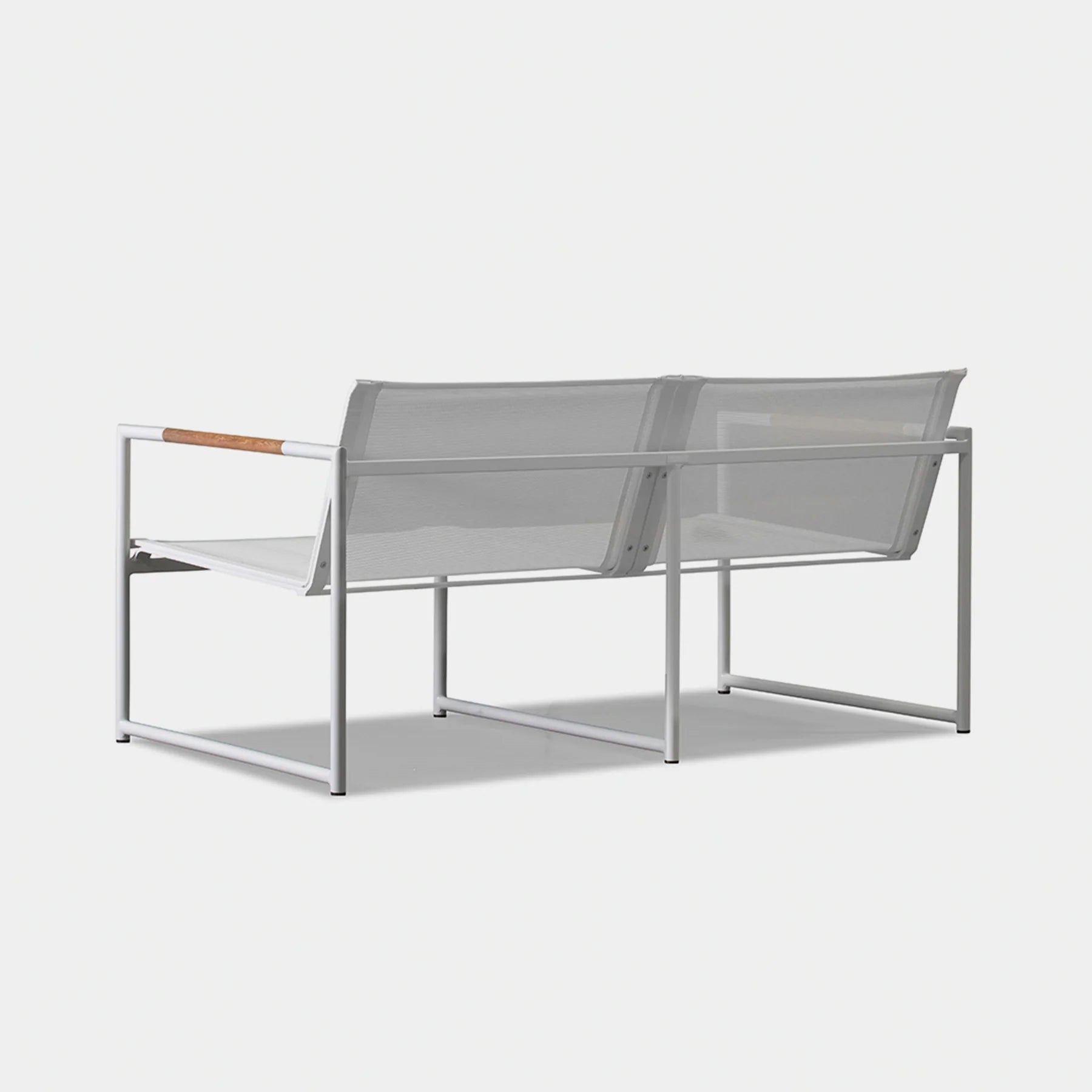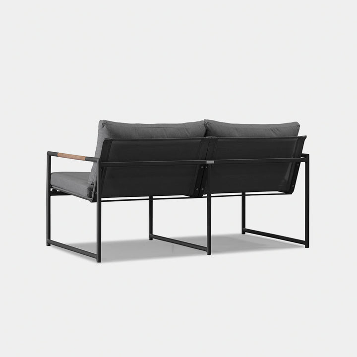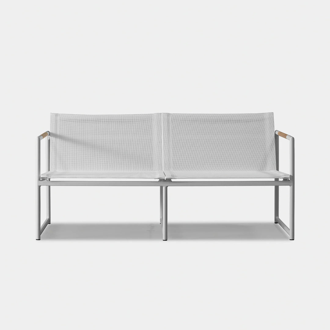 The Breeze 2-Seat Sofa is a sleek and modern outdoor seating option from the Breeze collection. Crafted with a powder-coated extruded aluminum frame and solid teak accents, this sofa features a slatted pitched back and plush cushions for ultimate comfort. Its low-profile design makes it a great choice for smaller outdoor spaces or balconies, and it can even be used without cushions for a minimalist look. Enjoy the alluring simplicity of the Breeze collection and relax in style.