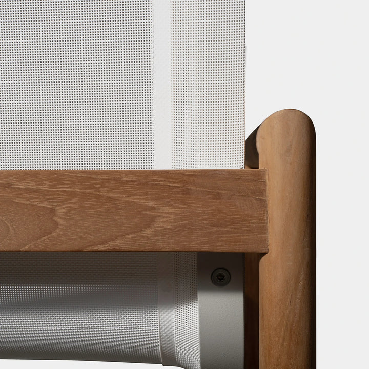A signature Harbour collection, our Breeze XL Teak line features cylindrical solid teak craftsmanship with a seaside feel. The Breeze XL Teak Dining Chair perfectly complements our table — with an all-weather Batyline sling seat and back for support and easy cleaning stretched across an aluminum frame, no cushion required. This laidback piece is made for various table sizes and grander spaces.
