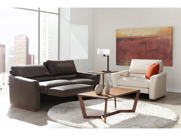 The Bryant Motion Sofa by American Leather offers a seamless blend of contemporary style and innovative motion technology. With its flared arms, sleek wood sled legs, and whisper-quiet reclining mechanism, the Bryant Motion Sofa brings both elegance and ultimate comfort to your living space. Perfect for relaxing or entertaining, it features customizable options to suit any décor.
