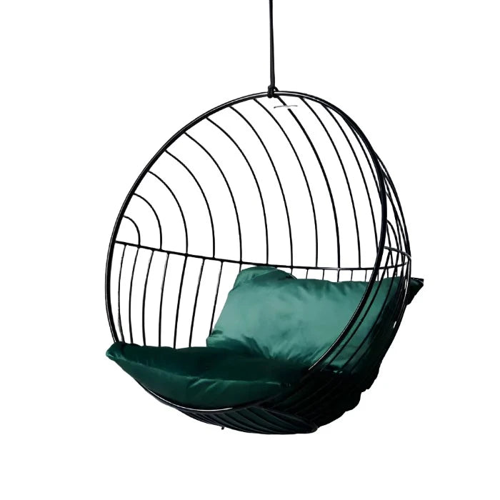 The Bubble Chair with Tourmaline Velvet Cushions by Studio Sterling offers a perfect blend of modern design and cozy comfort. Its round shape creates an inviting and comfortable feel, while the striking modern patterns enhance its visual appeal. Ideal for various settings, including landscaping, public spaces, homes, and gardens, this hanging chair is perfect for relaxing, reading, catching up on electronic devices, or just hanging out.