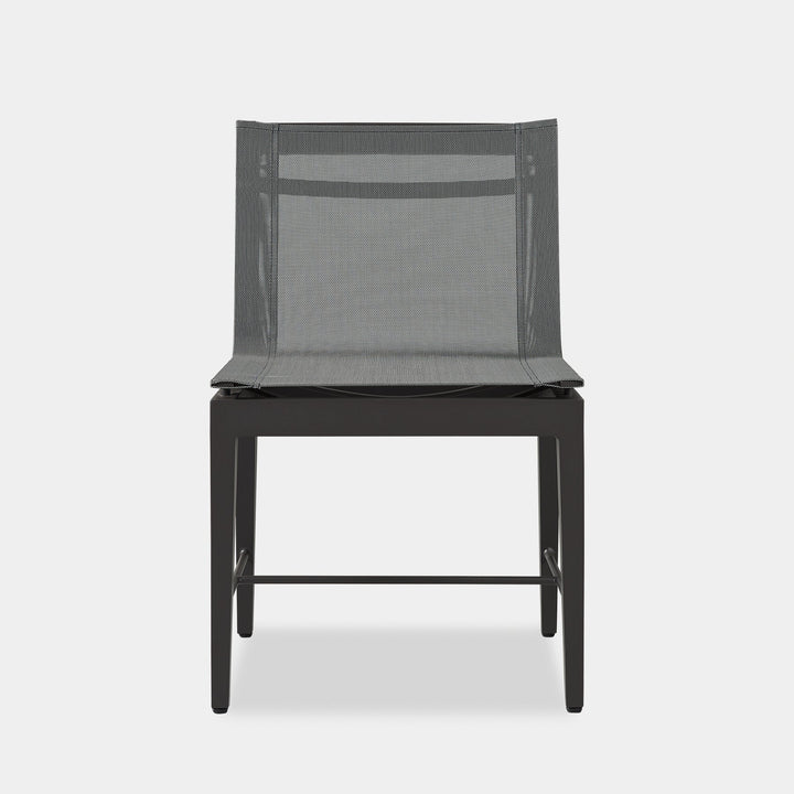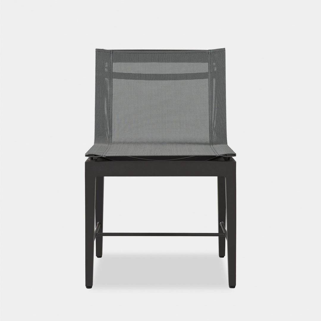 Our Byron Aluminum collection blends sophisticated styling with an architectural play of angles to create exceptional design. A unique take on the typical dining chair, the Byron Aluminum Dining Chair was designed as the perfect outdoor seating — enjoy an all-weather Batyline mesh seat for comfort, supported by a handcrafted powder-coated extruded aluminum frame with a matching stretcher at the bottom for visual interest. With subtle elegance, this highly usable piece instantly enhances any space.