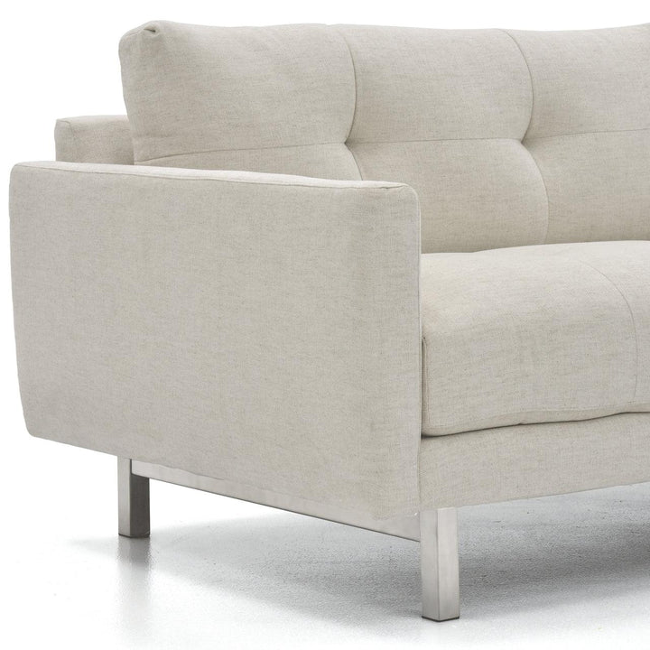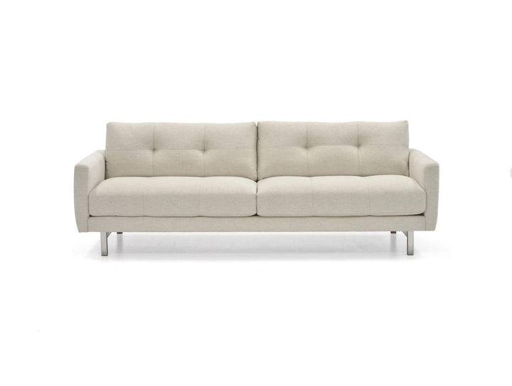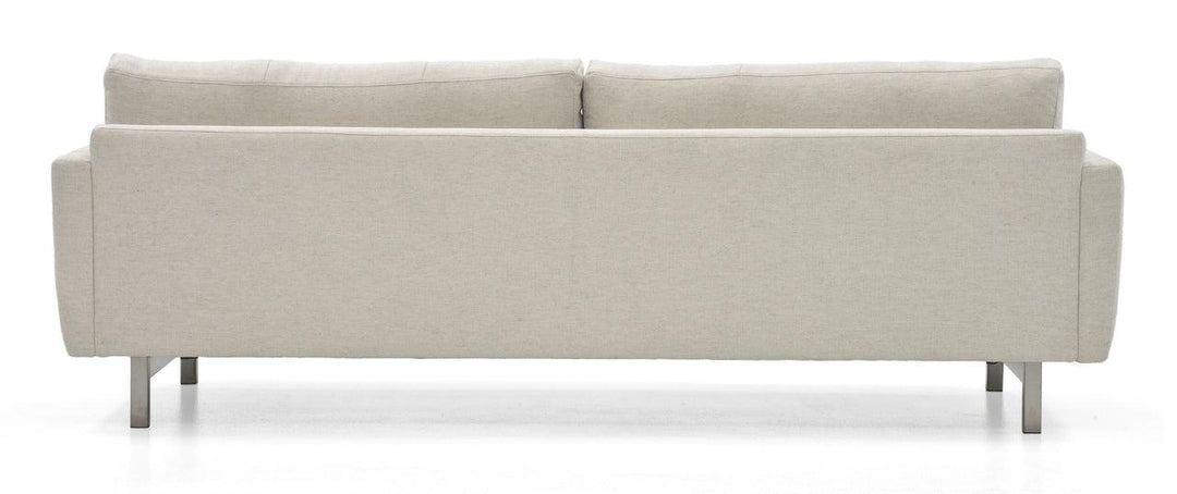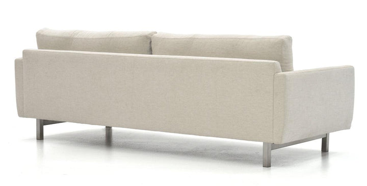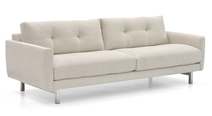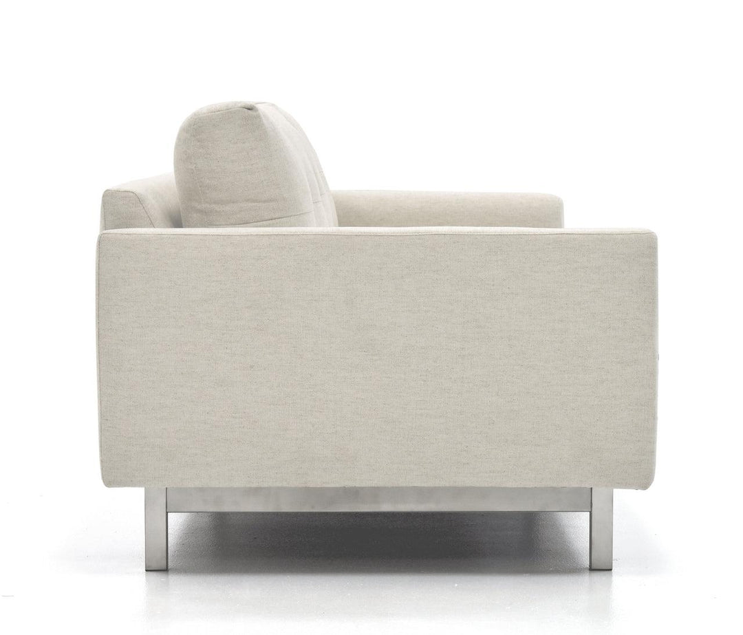 The Carmet sofa features a sleek, modernist track arm that tapers in from the top of the sofa to the bottom for an elegant look that cannot be ignored. Its low-profile beauty is further accentuated by its plush, sloping waterfall detail that can be seen on the interior of its arm.