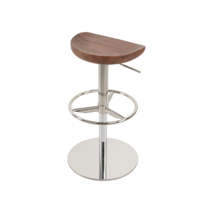 The Cattelan Piston Full Footrest is a contemporary stool with a comfortable upholstered seat and backrest on an adjustable gas piston base that swivels and adjusts easily from counter height to bar height with a lever that activates the gas piston mechanism. The solid steel round and square base is available in chrome or stainless steel. The stool is suitable for both residential and commercial use.