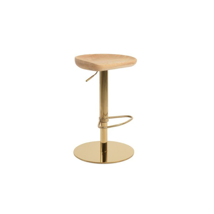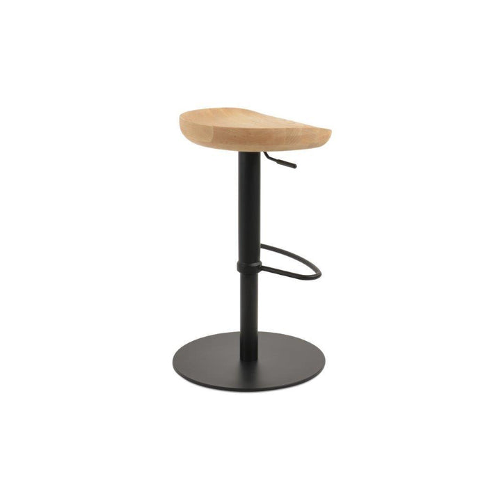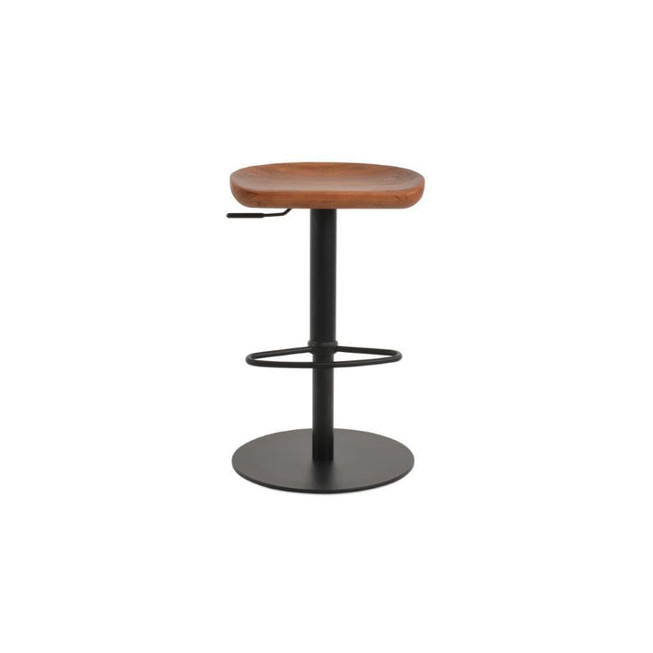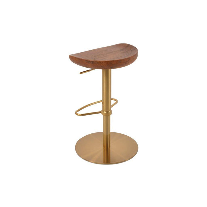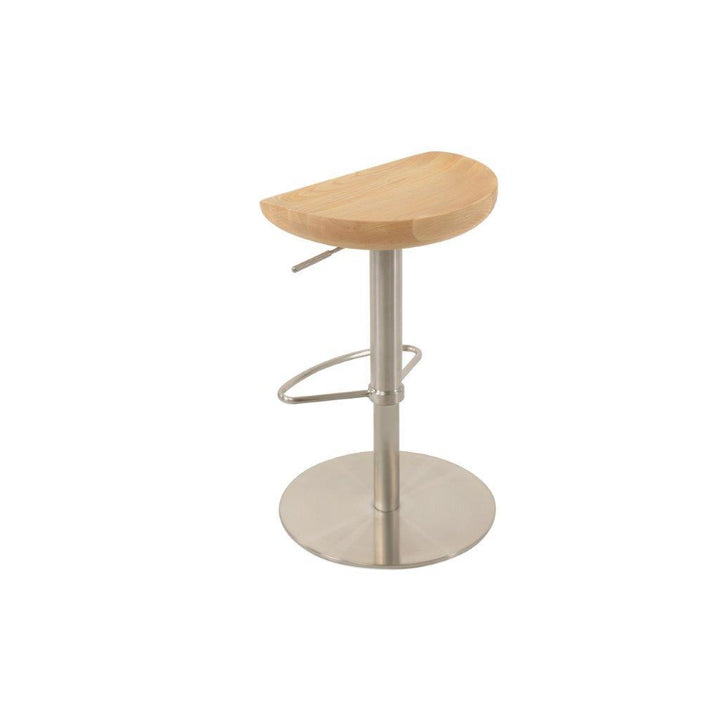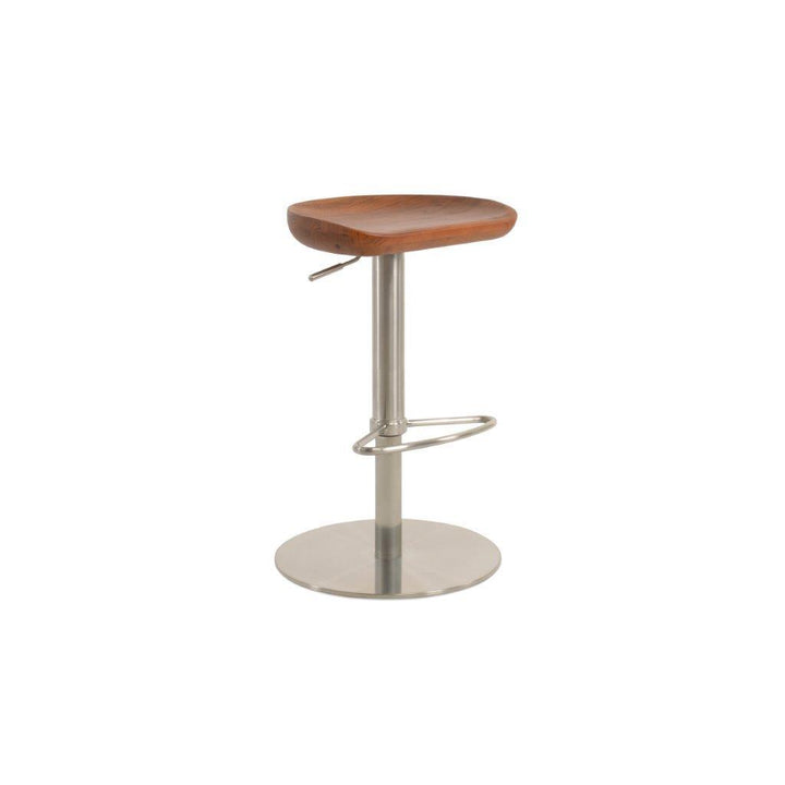 Cattelan Piston Half Footrest by Soho Concept is a modern stool with a comfortable wood seat and backrest on an adjustable gas piston base that swivels and can be easily adjusted from a counter height to a bar height with a lever that activates the gas piston mechanism. The solid steel round and square base is available in chrome or stainless steel. This contemporary stool is suitable for both residential and commercial use, and it is designed by Namik Ozkaynak.