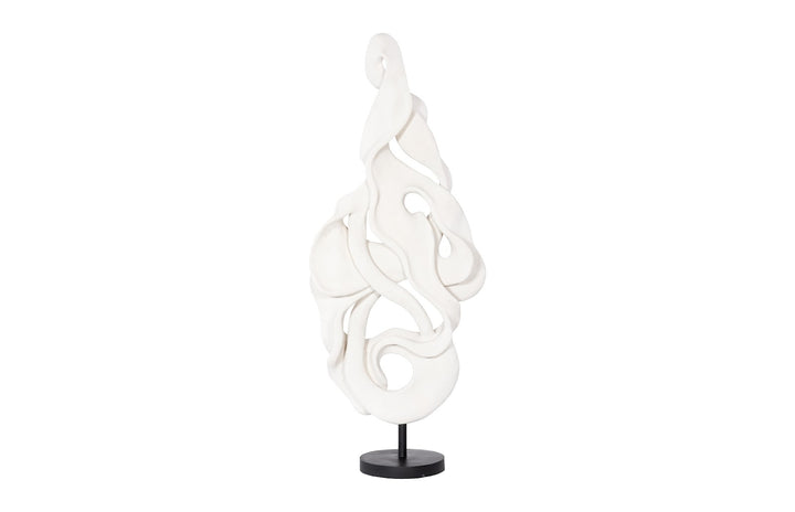 The Cast Dancing Sculpture by Phillips Collection is an enchanting piece that captures the fluid, ribbon-like motion of nature in an artistic form. Hand-finished in a faux bleached wood grain effect, this sculpture is a modern interpretation of natural elements, blending seamlessly into contemporary and organic-themed interiors. Its tall, elegant design makes it a striking accent piece for any home, adding height, movement, and a soft neutral palette to your space. Crafted from lightweight resin, it is designed to mimic the intricate beauty of wood while offering the durability of modern materials.