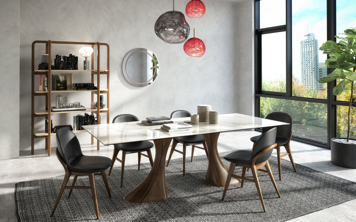 The Charles Dining Table is a stunning example of modern furniture design. Its simple yet elegant style is perfect for contemporary homes, with a sleek, rectangular top made of high-quality wood veneer that provides a warm, natural look. The base features four slim, tapered legs that are both sturdy and visually striking. The Charles Dining Table is available in a range of finishes to suit any interior style, from classic to modern. Its clean lines and minimalist aesthetic make it a versatile piece that can easily be paired with a variety of dining chairs.