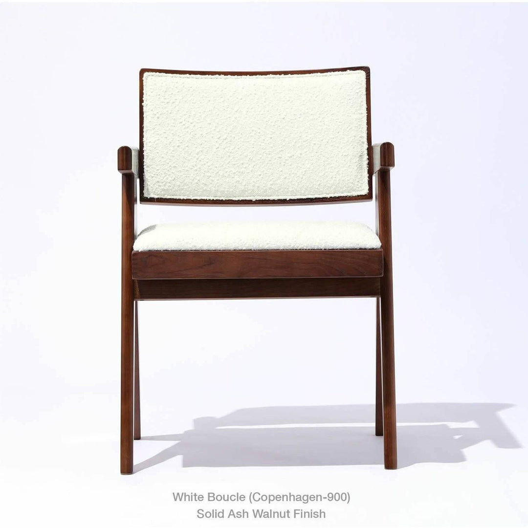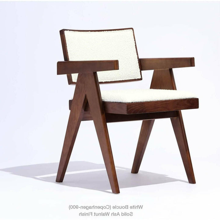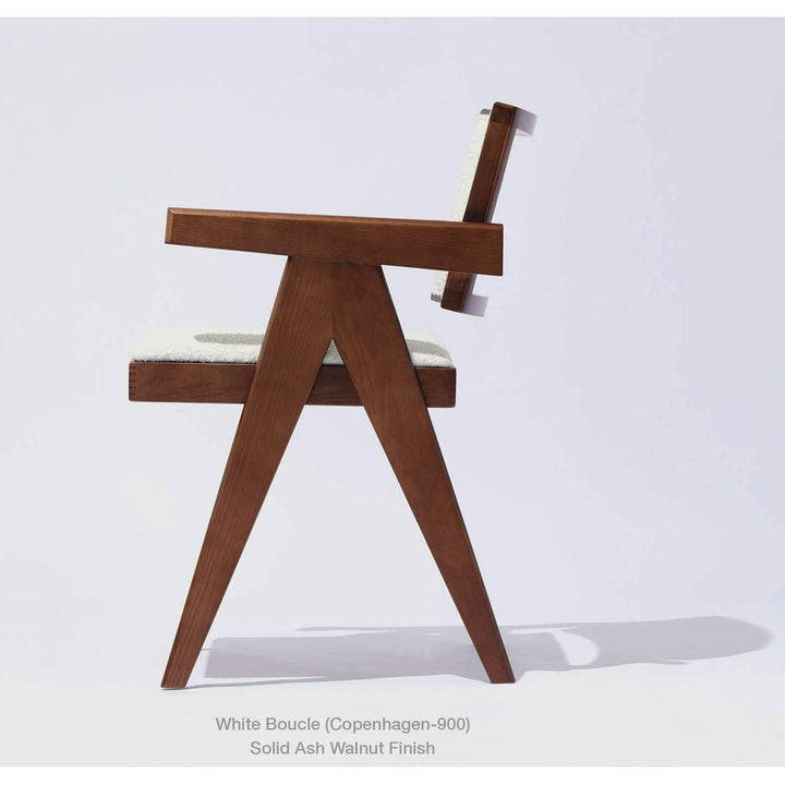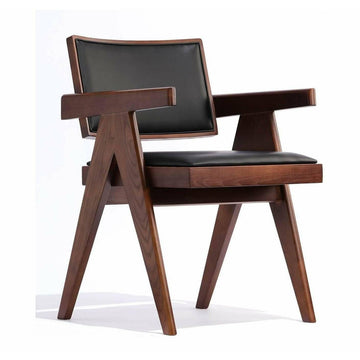 Pierre J Arm Chair UPH is a contemporary chair with an upholstered seat and back. The frame is finished in wood. The Industrial Modern team designs Pierre J Arm Chair, which is suitable for residential and commercial use.