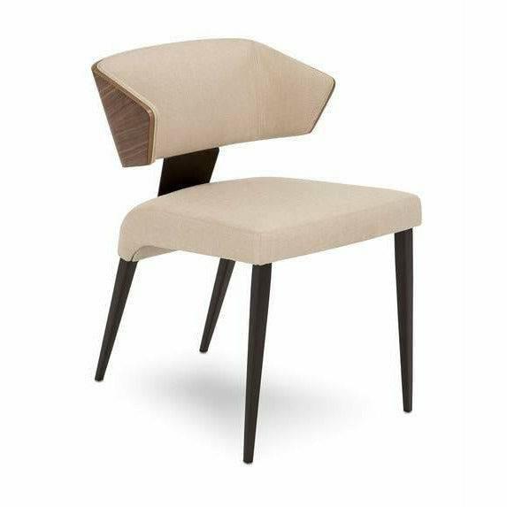 A generous wraparound upholstered back, clad in rich walnut veneer, is the defining feature of the Costa Dining Chair by Elite Modern. The dynamic curves and angles of the back are echoed in the seat and base to provide a stylish, contemporary look. Tapered steel legs have an athletic stance, and the reverse waterfall seat provides long-term comfort. You can choose any Elite powder-coat and wood finish to customize Costa to your exact taste. Shown here with our new Poly table, Costa will easily coordinate with any of our popular dining tables to create a sleek, contemporary ensemble.