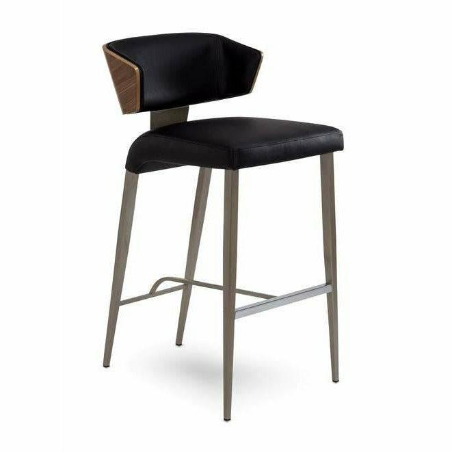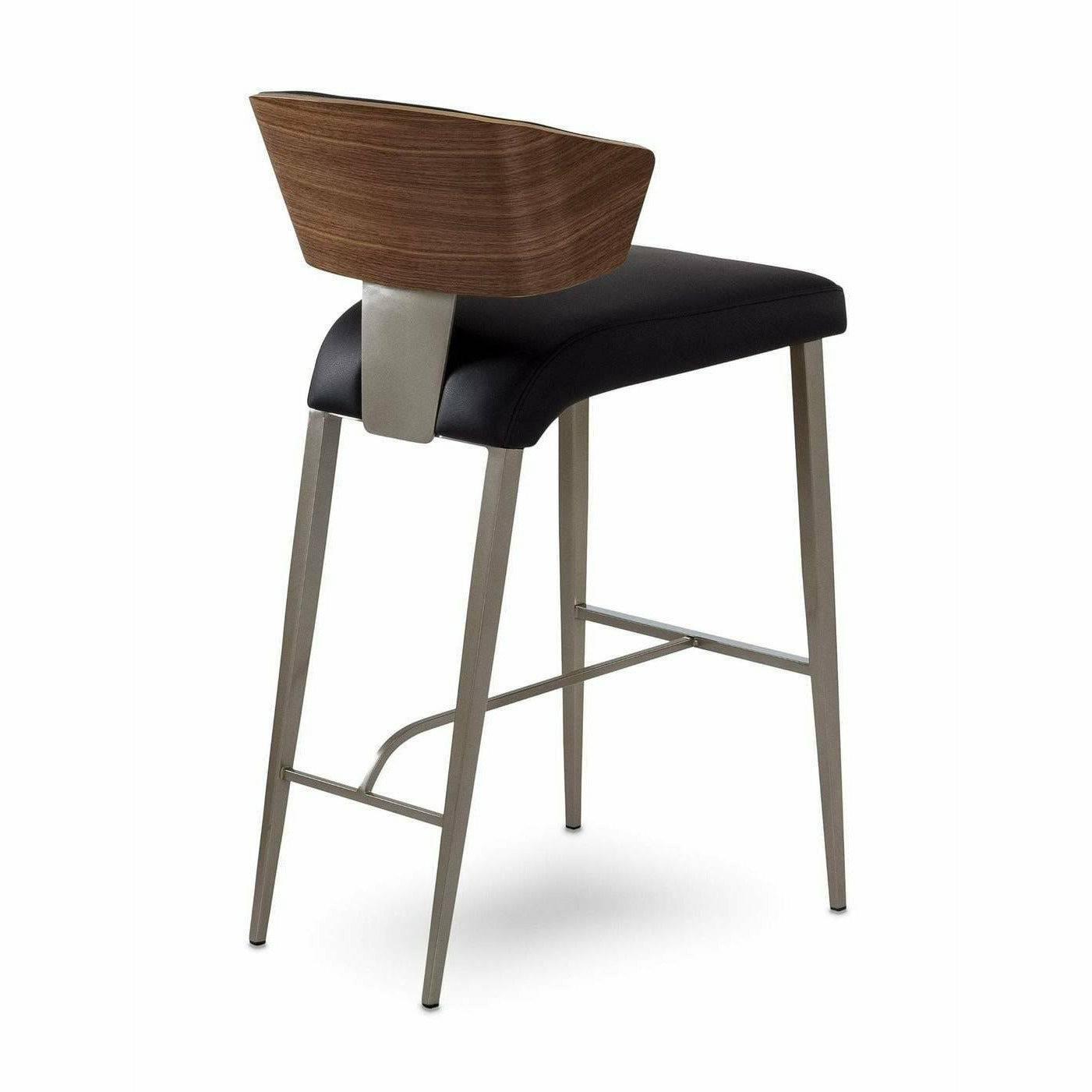 The handsome Costa stool collection features substantial wraparound upholstered backs, clad in rich walnut veneer, to coordinate with our popular Costa dining chair. Choose between stationary bar and counter stools, or the hydraulic swivel stool for superb comfort and a stylish, modern look. You can select any Elite powder-coat and wood finish to customize Costa to exactly fit your design scheme. All stools feature polished chrome footrests for sparkle and durability, and the hydraulic stool easily adjusts from counter to bar height. Costa stools will easily coordinate with any of our popular bars or pub tables to create a sleek, contemporary ensemble.