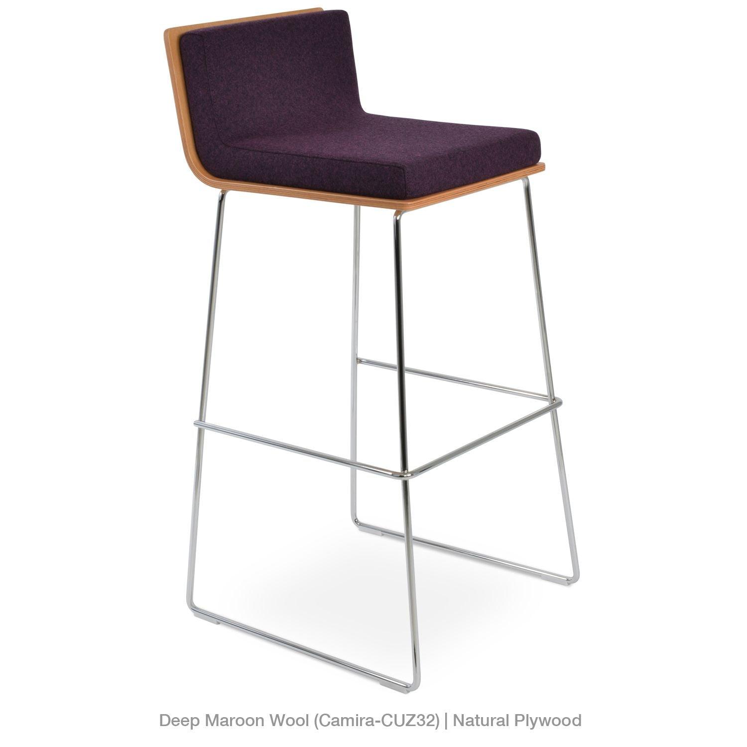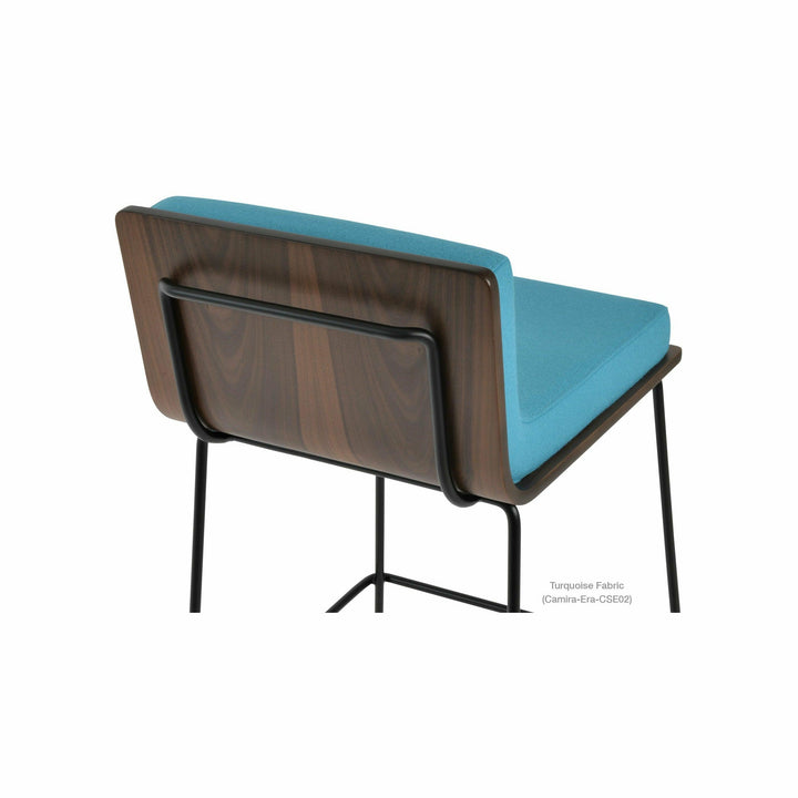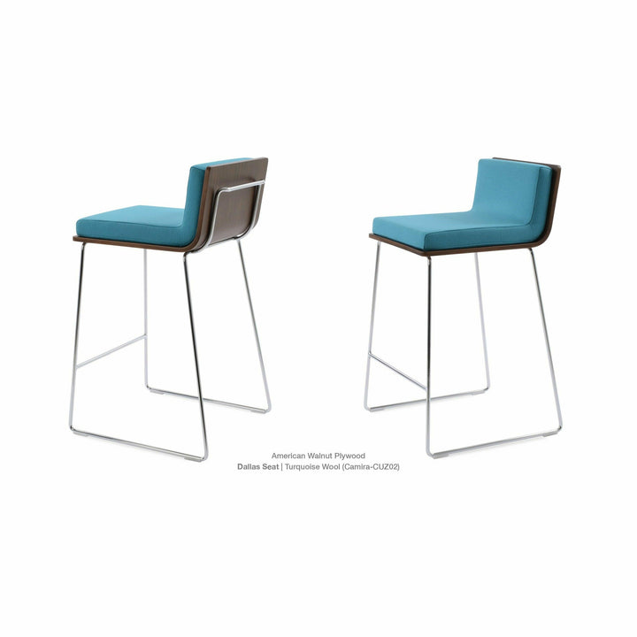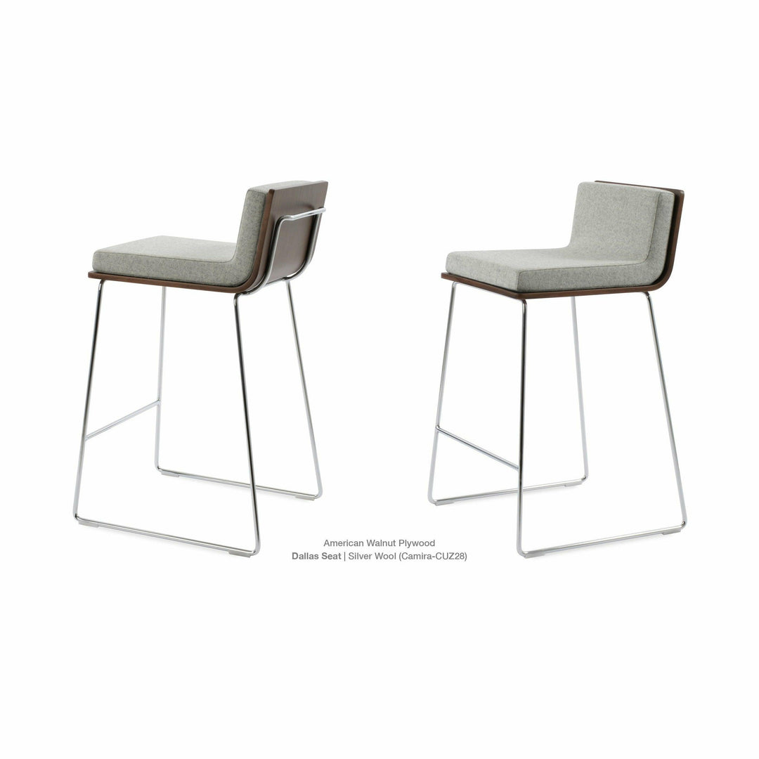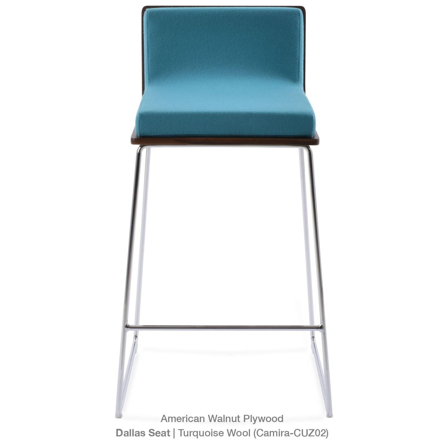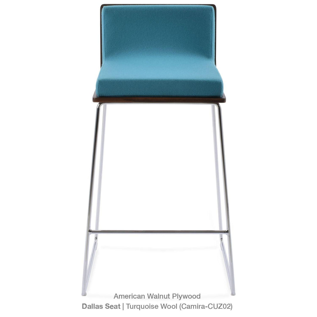 Dallas PL Wire Handle Back Stool by SohoConcept features a sleek and modern design, a comfortable upholstered seat, and a unique wire handle backrest. The stool is made of a durable steel frame suitable for residential and commercial use. It's available in various colors and finishes to complement any decor style.