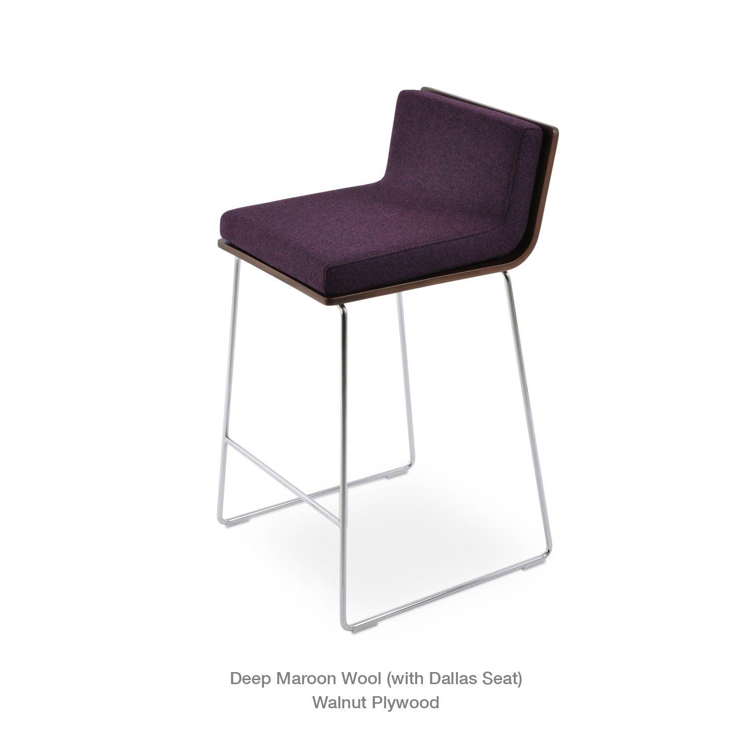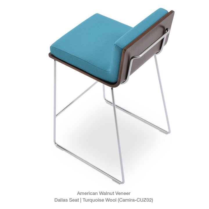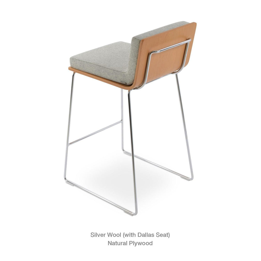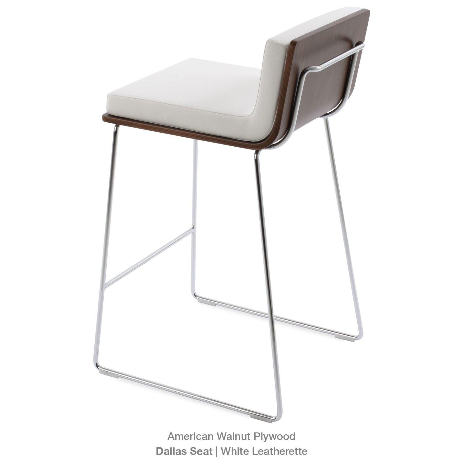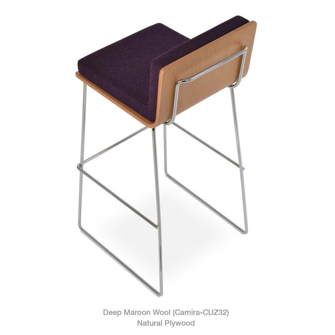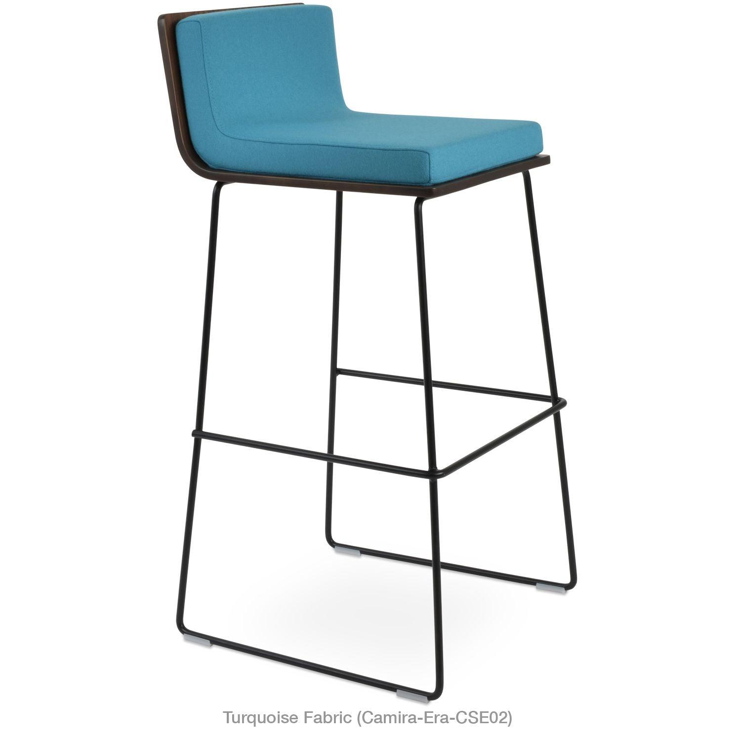 Dallas PL Wire Handle Back Stool by SohoConcept features a sleek and modern design, a comfortable upholstered seat, and a unique wire handle backrest. The stool is made of a durable steel frame suitable for residential and commercial use. It's available in various colors and finishes to complement any decor style.