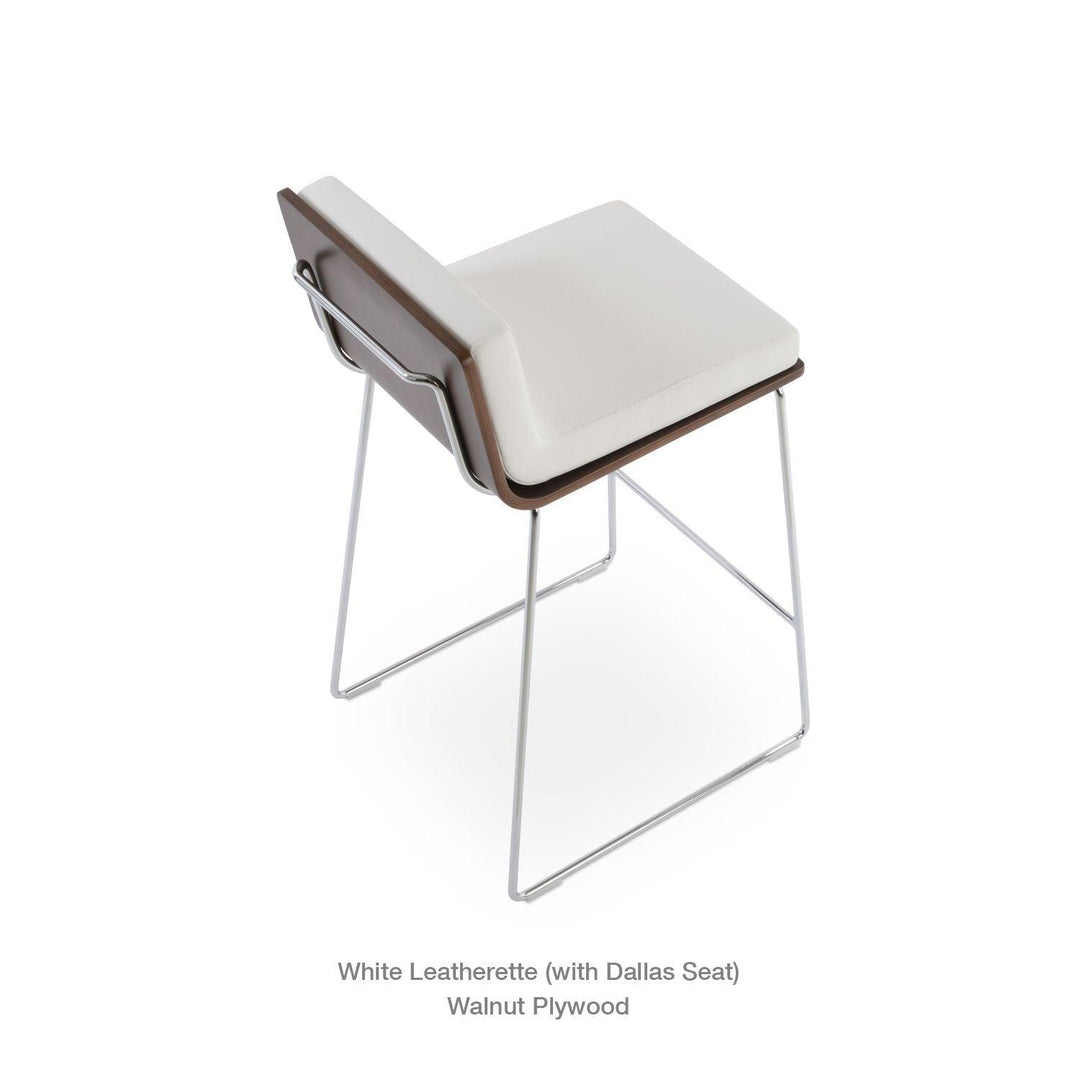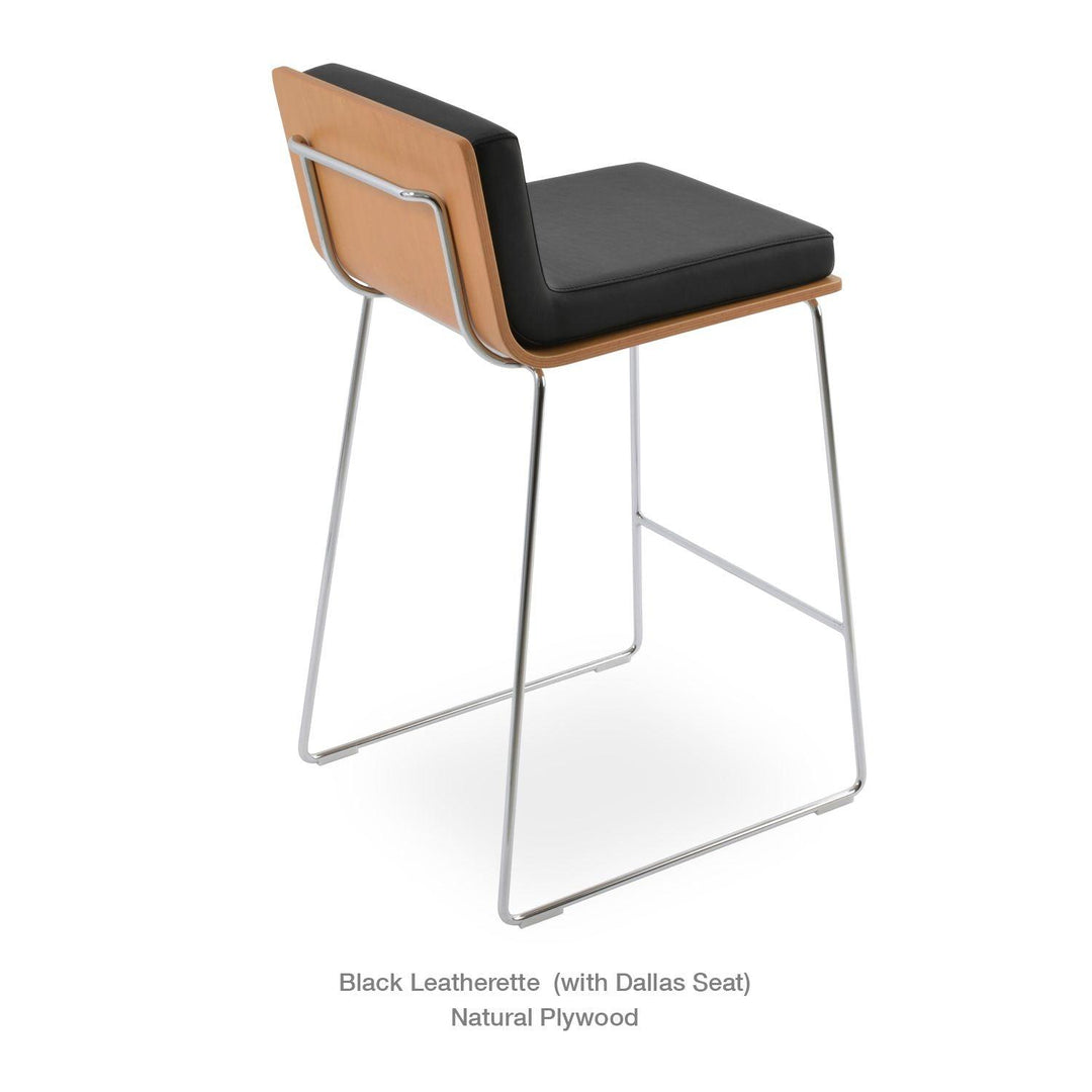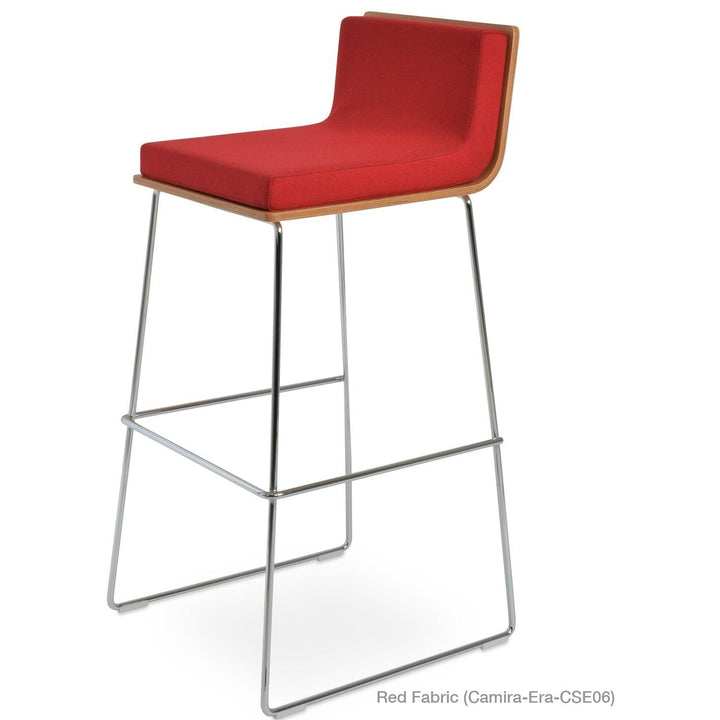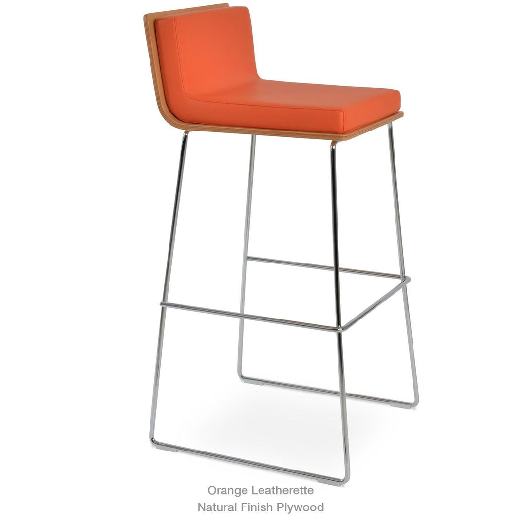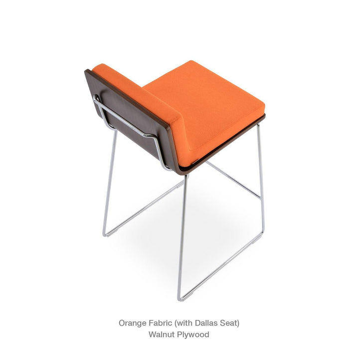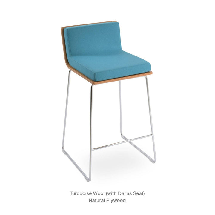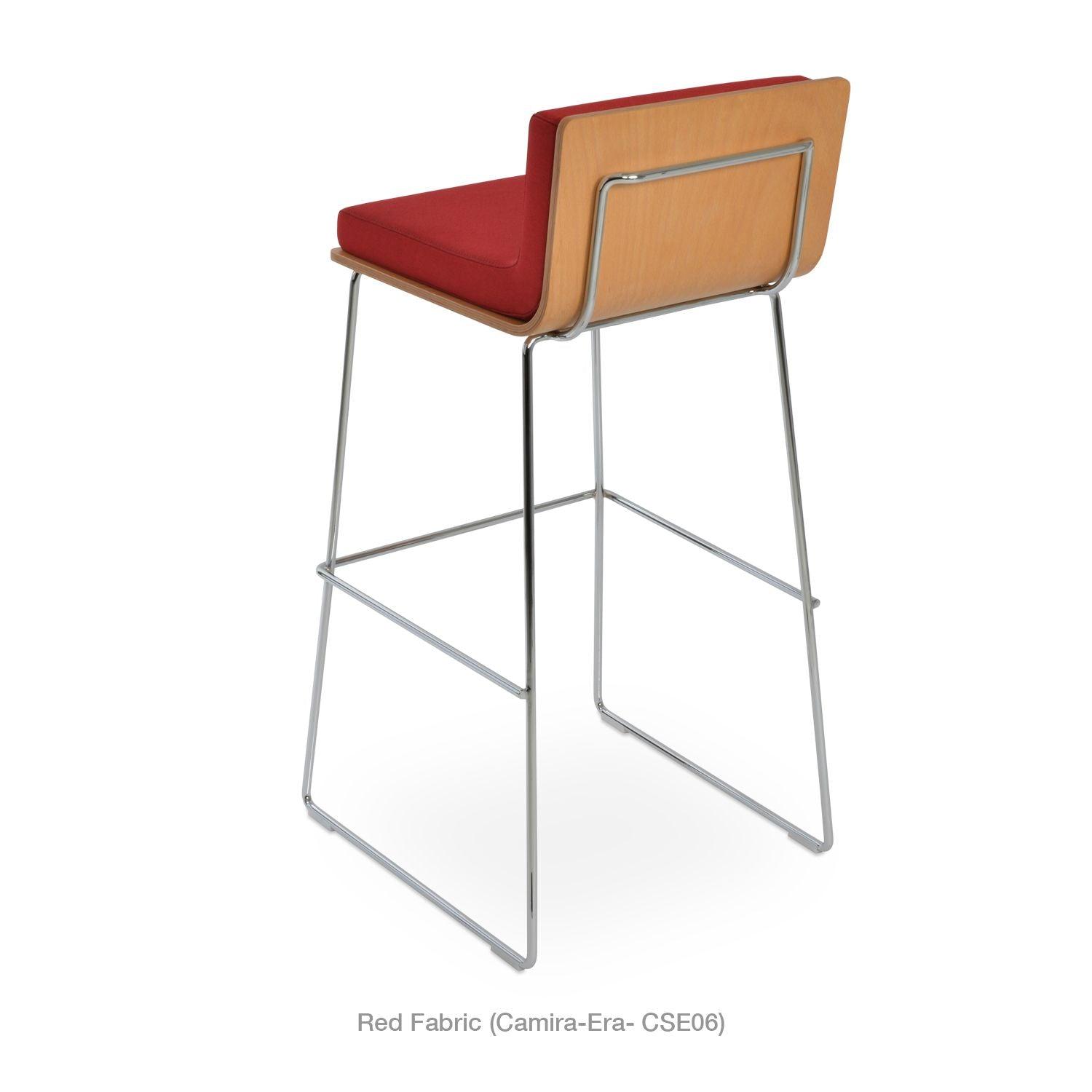 Dallas PL Wire Handle Back Stool by SohoConcept features a sleek and modern design, a comfortable upholstered seat, and a unique wire handle backrest. The stool is made of a durable steel frame suitable for residential and commercial use. It's available in various colors and finishes to complement any decor style.