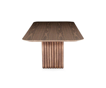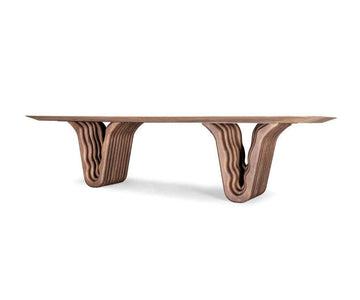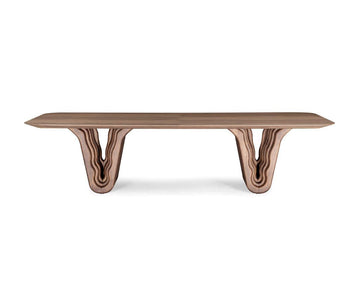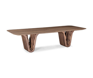 The DOLOMITAS Dining Table in Walnut by Uultis is a creation born from the transformation of experiences into tangible elegance. Designed with a passion for blending art and functionality, this piece is an homage to the enchanting Dolomites region. It stands as a sculptural representation of these UNESCO-recognized mountains, crafted with a solid wood base and an MDF top. This table is not merely a piece of furniture; it's a work of art that embodies the grandeur of natural wonders, designed to elevate the dining experience in any contemporary home.