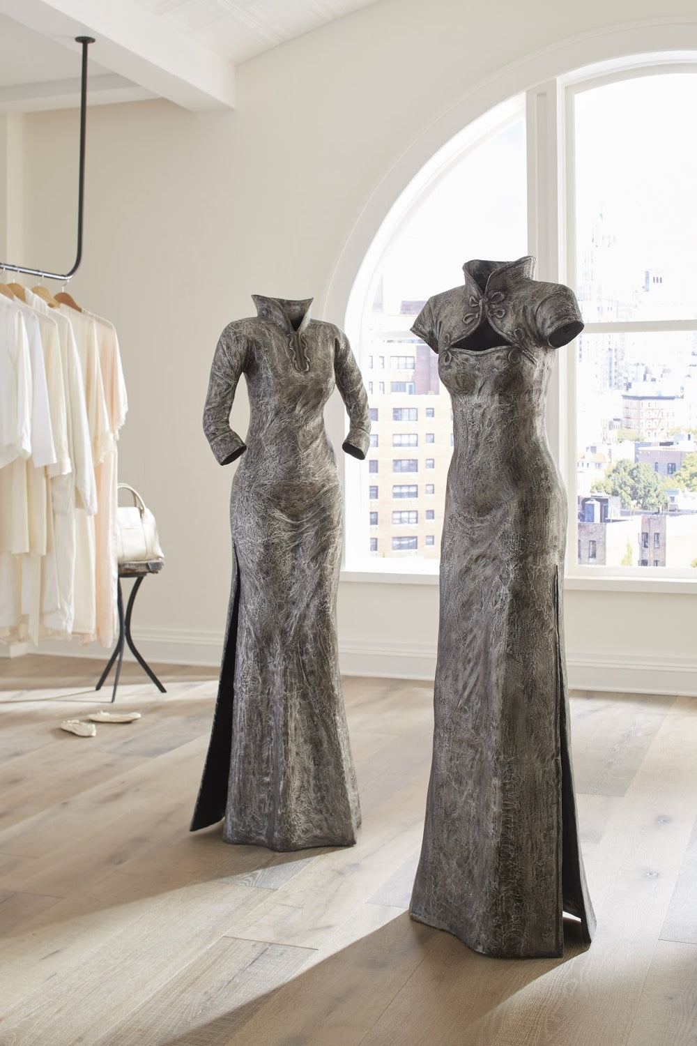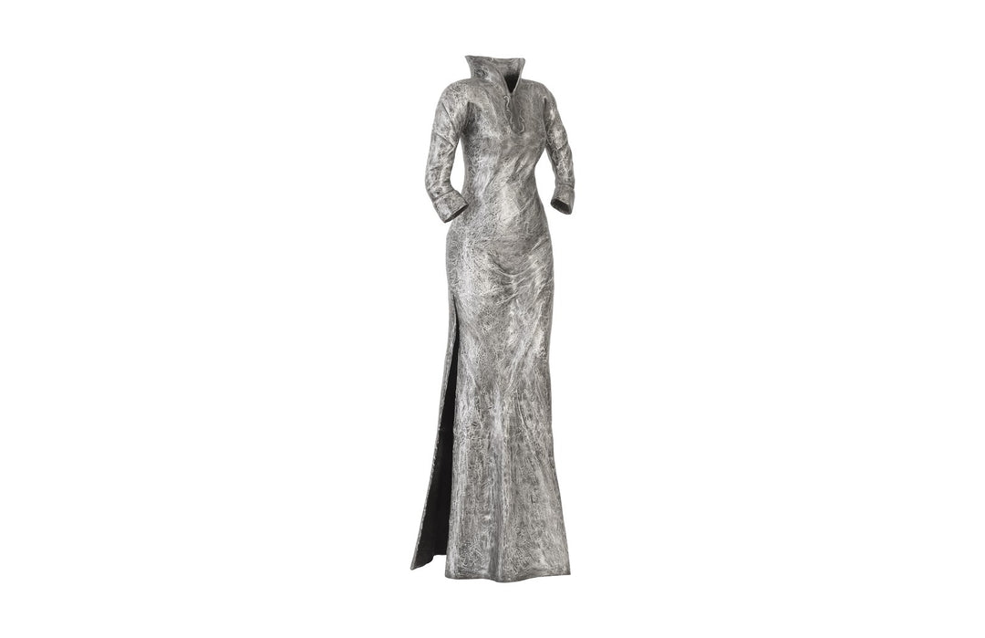 The Dress Sculpture, Short Sleeves Black/Silver by Phillips Collection is a stunning work of art, individually hand-sculpted from sheets of metal. This contemporary piece brings a sense of elegance and style, with a sleek, polished finish that makes the sculpture come to life. Perfect for making a bold statement in any interior, this sculpture is ideal for modern homes, galleries, or commercial spaces. Its black and silver finish adds an industrial yet sophisticated touch to the design. Crafted from durable aluminum, this sculpture is suitable for both indoor and outdoor settings, developing a natural patina over time when exposed to the elements.