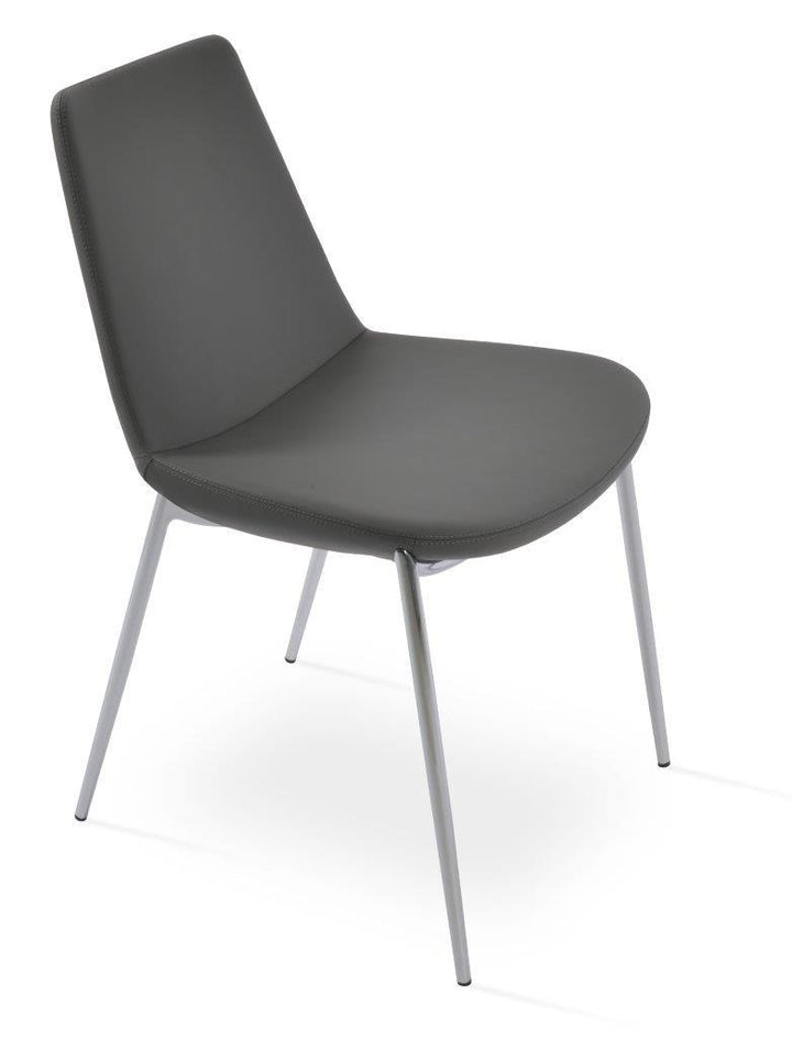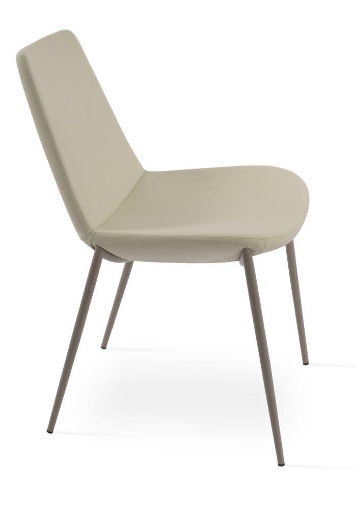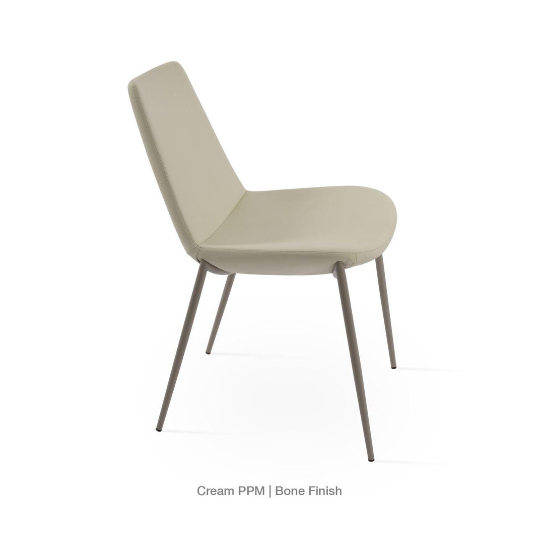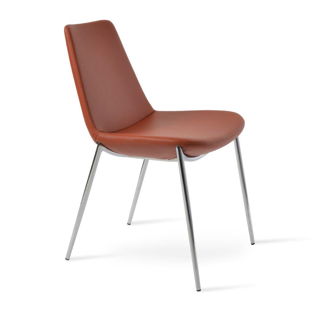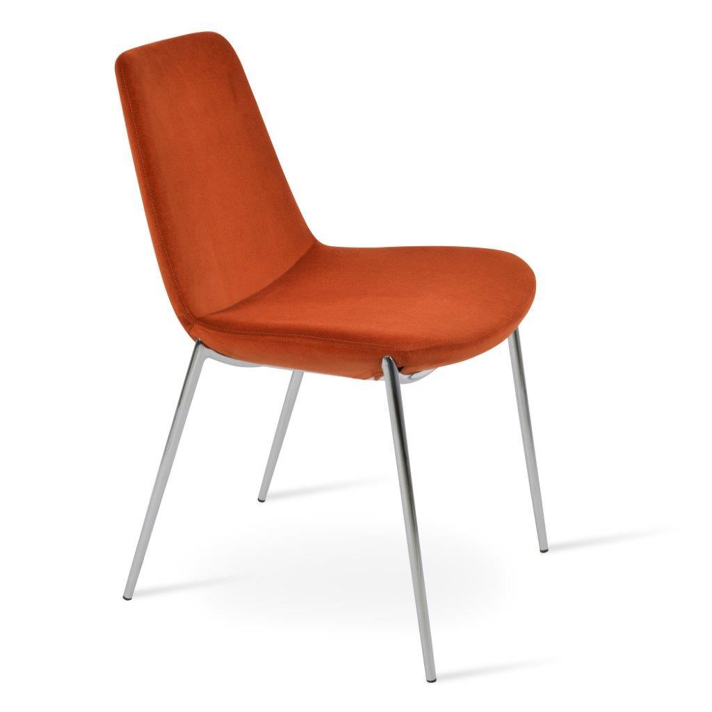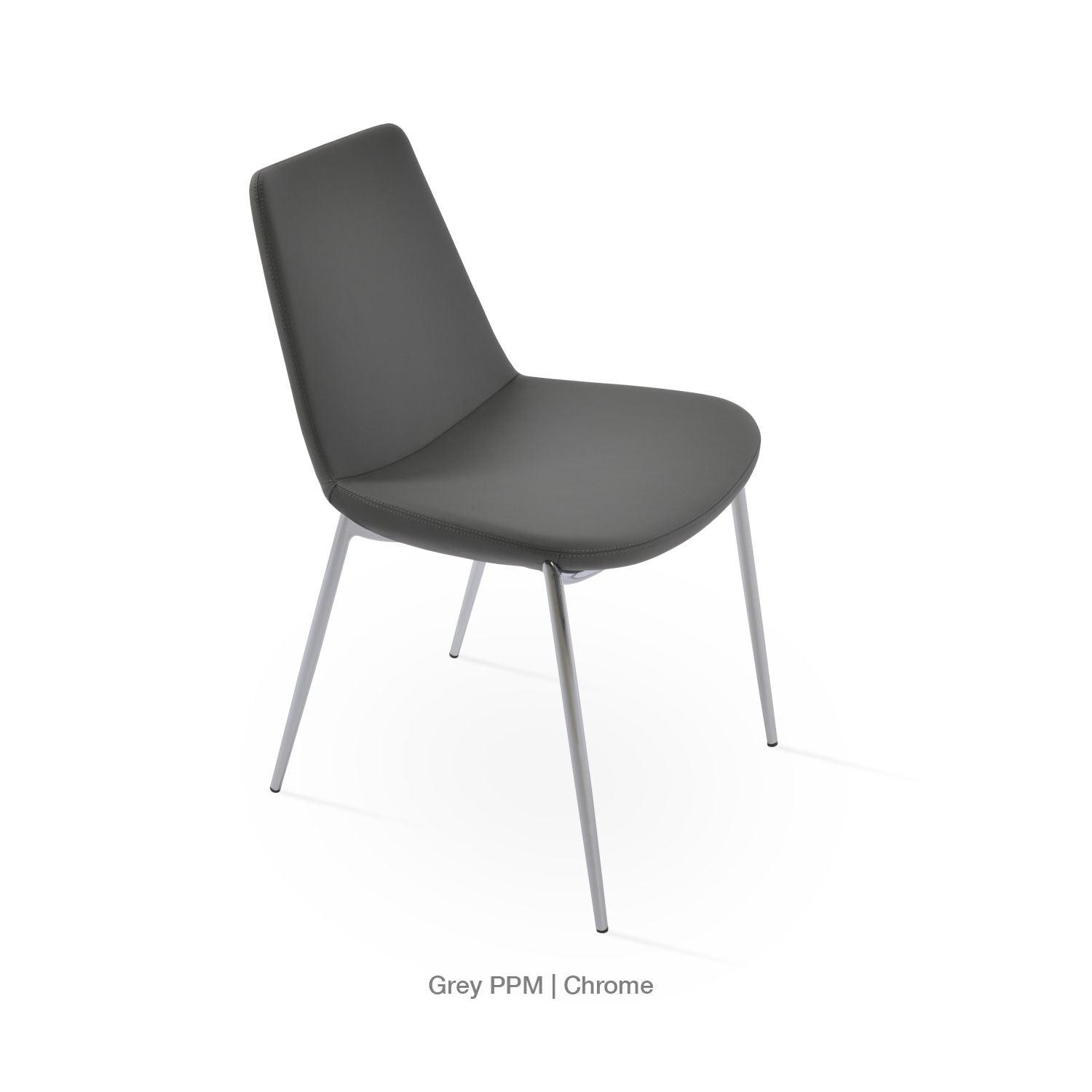 Eiffel Classy is a contemporary dining chair with a comfortable upholstered seat and backrest on solid chrome steel classy base. Each leg is tipped with a plastic glide embedded into the metal wire. The seat has a steel structure with “S” shape springs for extra flexibility and strength. This steel frame is molded by injecting polyurethane foam. Eiffel seat is upholstered with a removable velcro, enclosed leather, PPM, leatherette, wool, and Camira organic wool slipcover. Eiffel Classy may be upholstered with various colors as a special order with a minimum quantity required. The chair is suitable for both residential and commercial use.