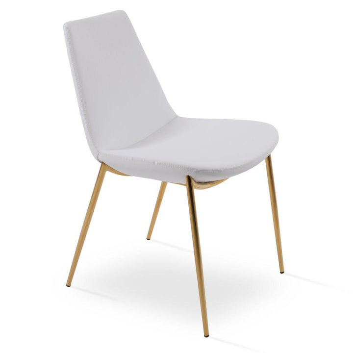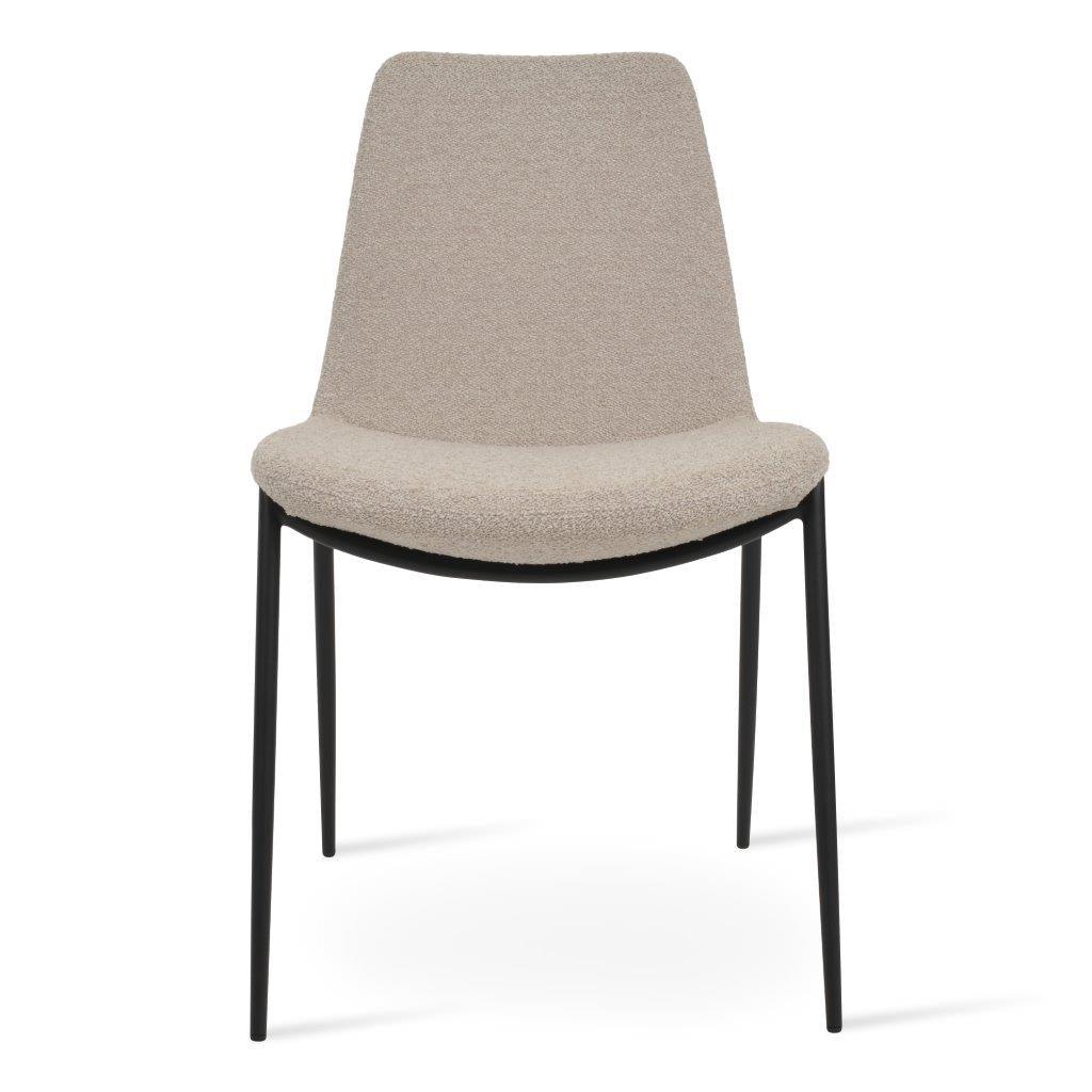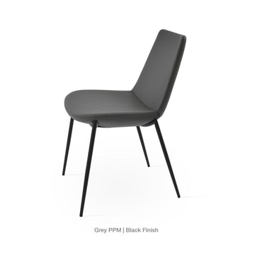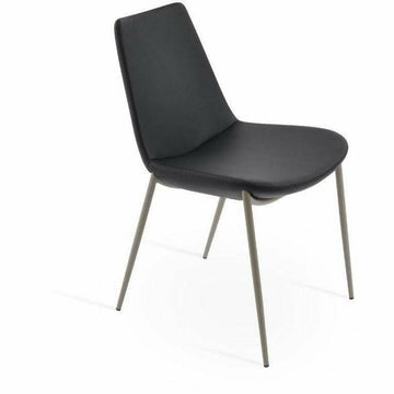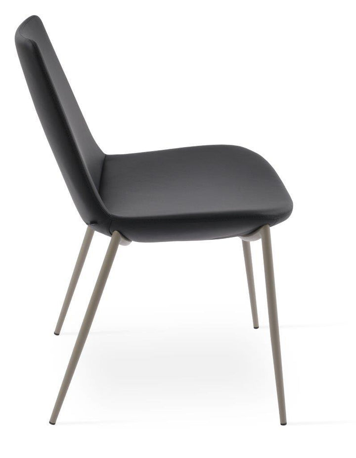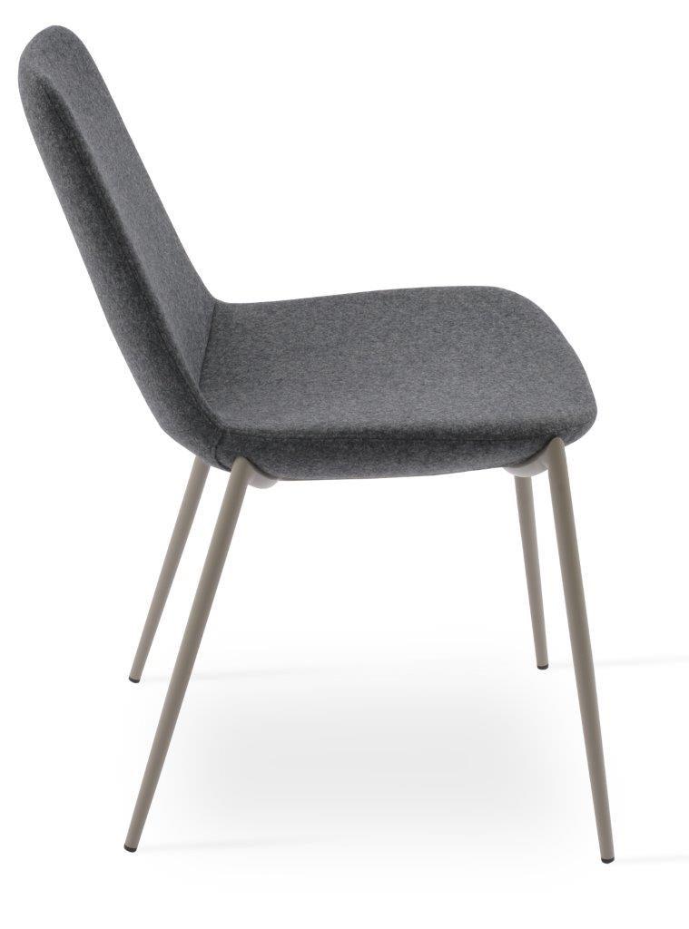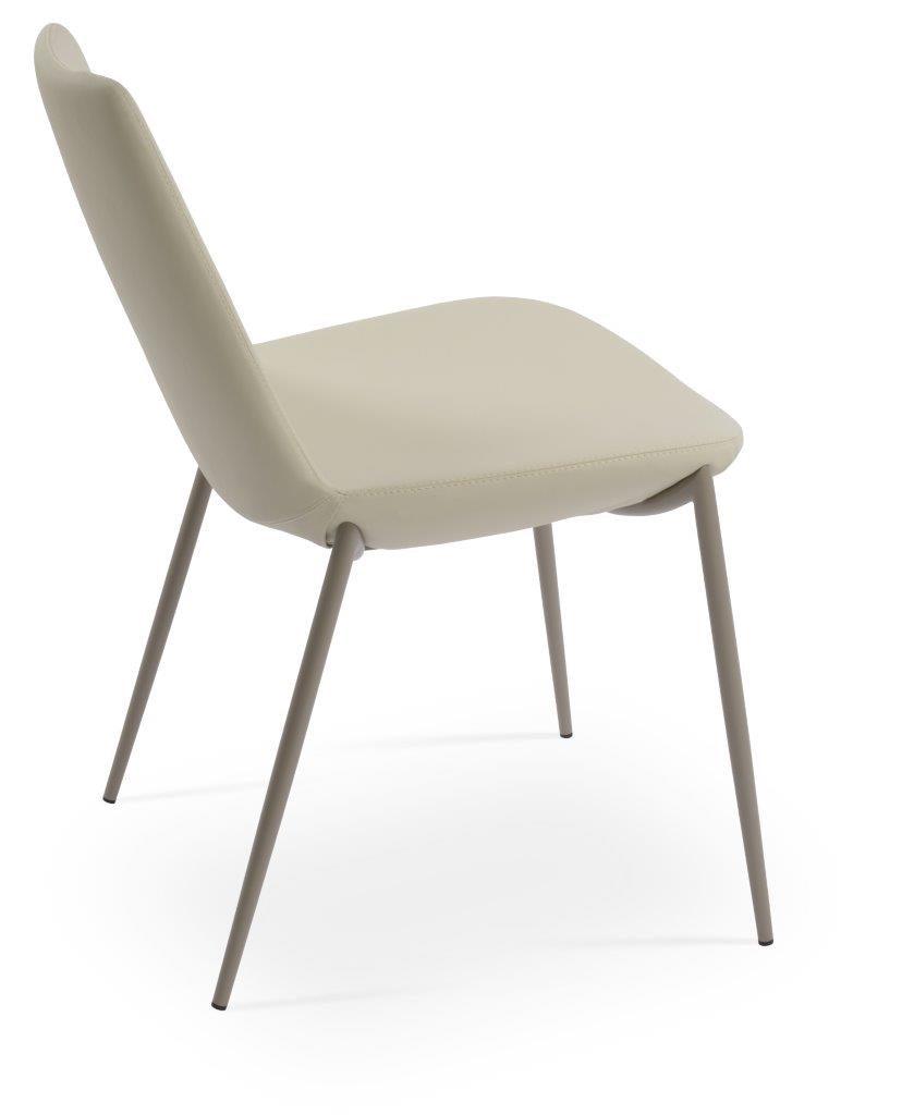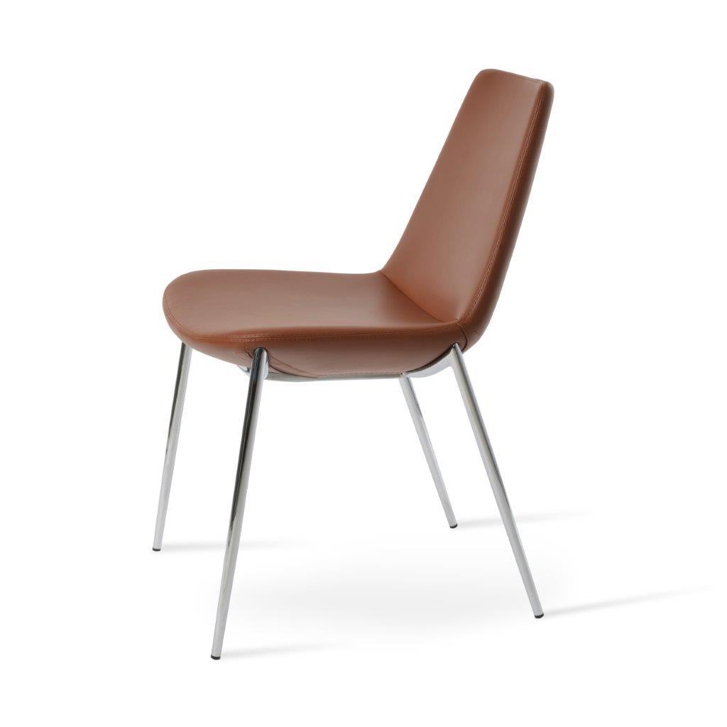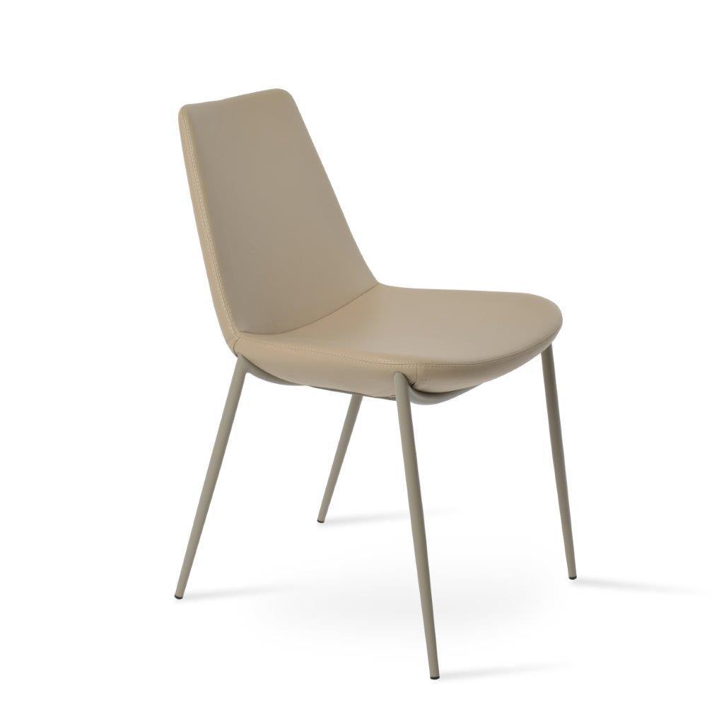 Eiffel Classy is a contemporary dining chair with a comfortable upholstered seat and backrest on solid chrome steel classy base. Each leg is tipped with a plastic glide embedded into the metal wire. The seat has a steel structure with “S” shape springs for extra flexibility and strength. This steel frame is molded by injecting polyurethane foam. Eiffel seat is upholstered with a removable velcro, enclosed leather, PPM, leatherette, wool, and Camira organic wool slipcover. Eiffel Classy may be upholstered with various colors as a special order with a minimum quantity required. The chair is suitable for both residential and commercial use.