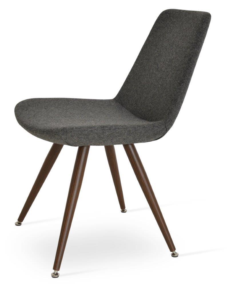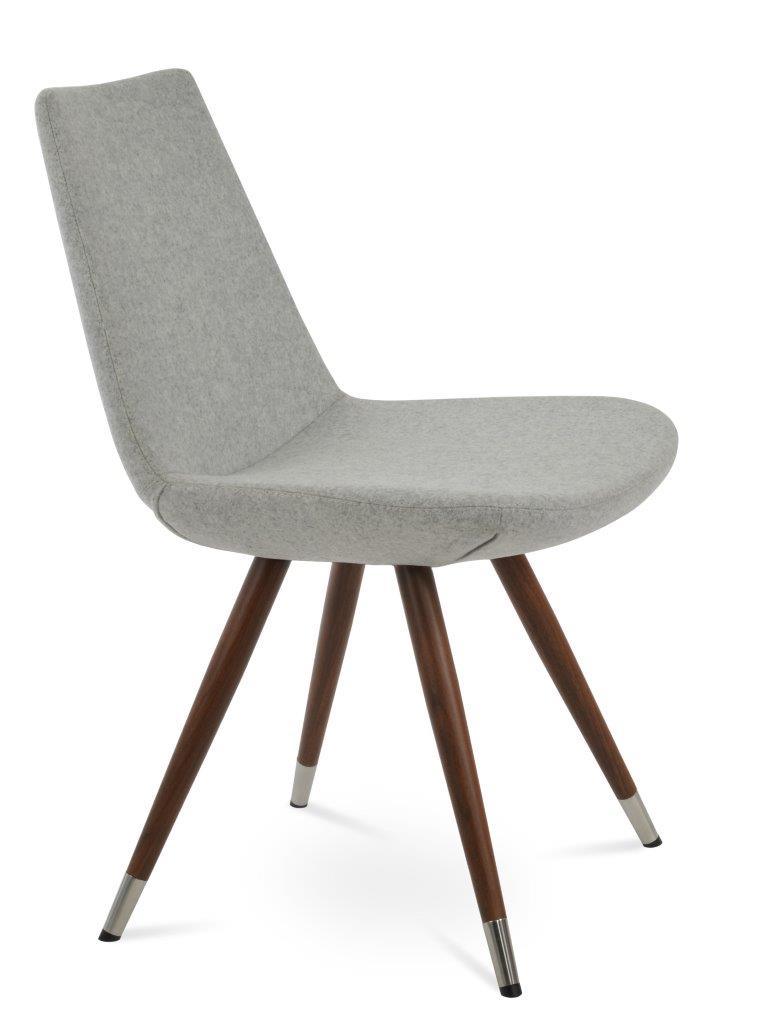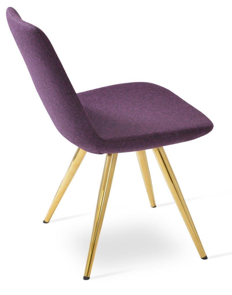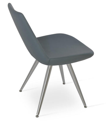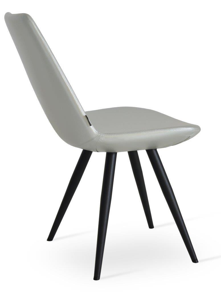 Eiffel Star is a contemporary dining chair with a comfortable upholstered seat and backrest on a black-coated steel base. The seat has a steel structure with “S” shape springs for extra flexibility and strength. This steel frame is molded by injecting polyurethane foam. The Eiffel seat is upholstered with a removable velcro, enclosed leather, PPM, leatherette, wool, and Camira organic wool slip cover. Eiffel Star may be upholstered with various other colors as a special order, with a minimum quantity of 10 required. The chair is suitable for both residential and commercial use. Eiffel Star is designed by the Soho Concept team.