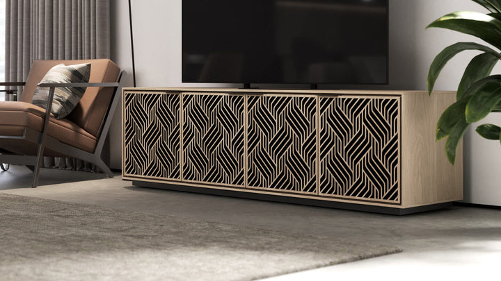 "The Weave pattern really stands out in our living room, and the internal storage is spacious enough for all our electronics. Highly recommend!" - David M.