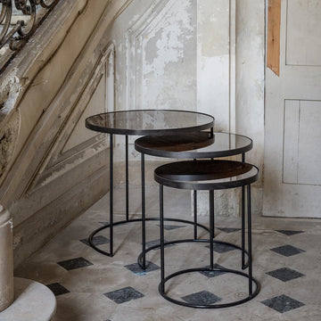 ⭐⭐⭐⭐⭐ "The Nesting Side Table Set adds a touch of elegance to our living room. The aged mirror surface is truly unique." - Sarah J.