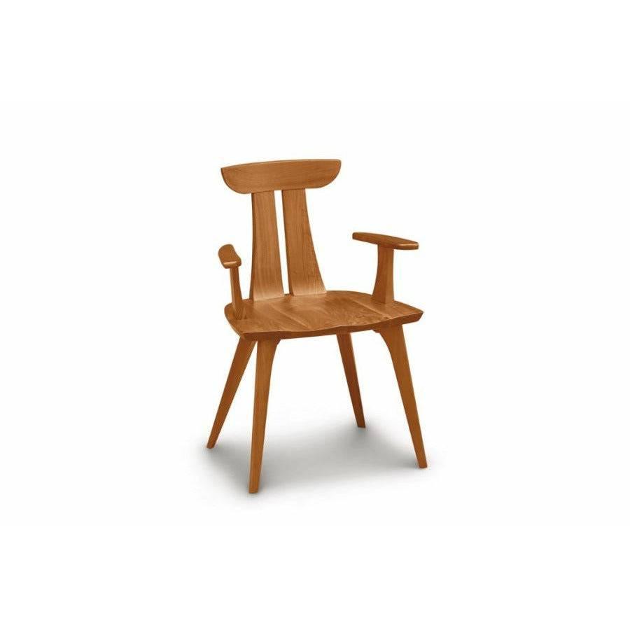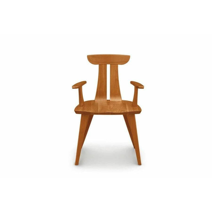 The Estelle Armchair is crafted in solid hardwood and Made to Order in several finishes. Estelle is also crafted in solid American black walnut with a natural finish. Walnut dining items are finished with a low sheen (10 sheens) top coat. The finish is GREENGUARD Certified for low chemical emissions.