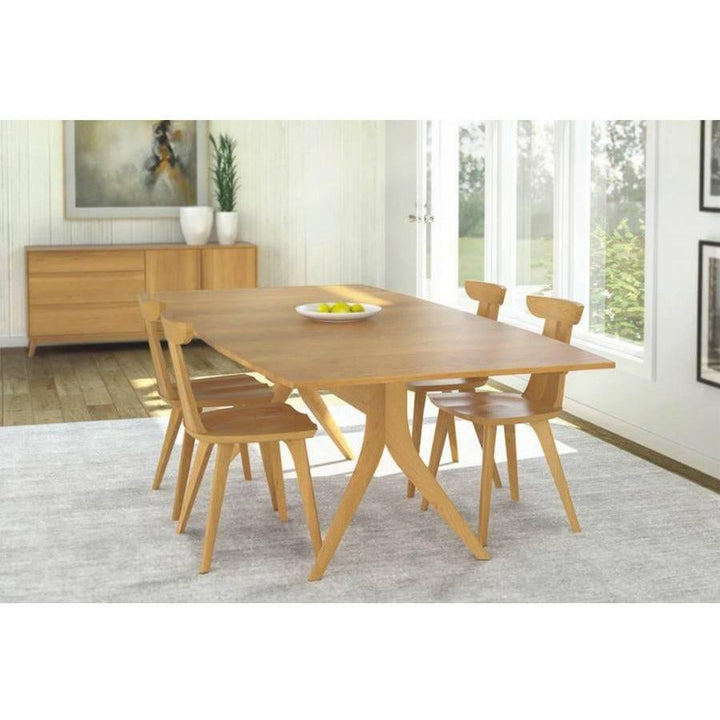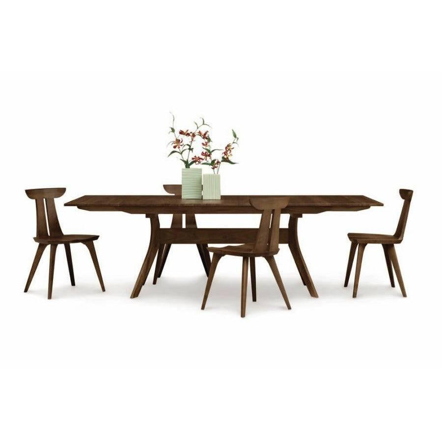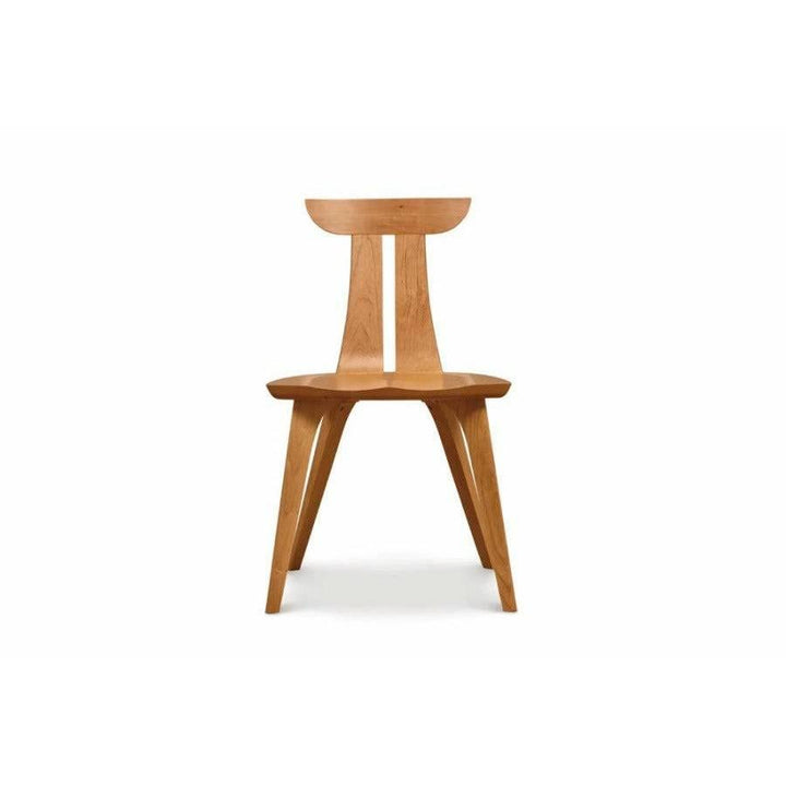 An exotic, elegant complement to any of the Copeland Furniture dining tables. With its curved and tapered lines, the Copeland Furniture Estelle Chair is a dining chair with a somewhat Asian-inspired sensibility. It is made out of solid American black walnut or cherry hardwood and comes in a versatile range of finishes.