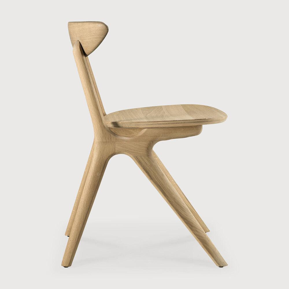 The Eye Dining Chair, crafted by the visionary designer Alain van Havre for Ethnicraft, is a masterpiece that captures the essence of modern design with a nod to subtle elegance. Celebrated for its sleek, angular front legs and smoothly flowing connections, this chair is a paradigm of solid wooden seating. The name "Eye" is derived from its distinctive curved backrest, which mimics the gentle arc of a wink, encapsulating both comfort and contemporary style in one. Awarded the Best in Competition at the HD Expo 2022 in the Dining Chair category, the Eye dining chair stands as a testament to exceptional design and craftsmanship.