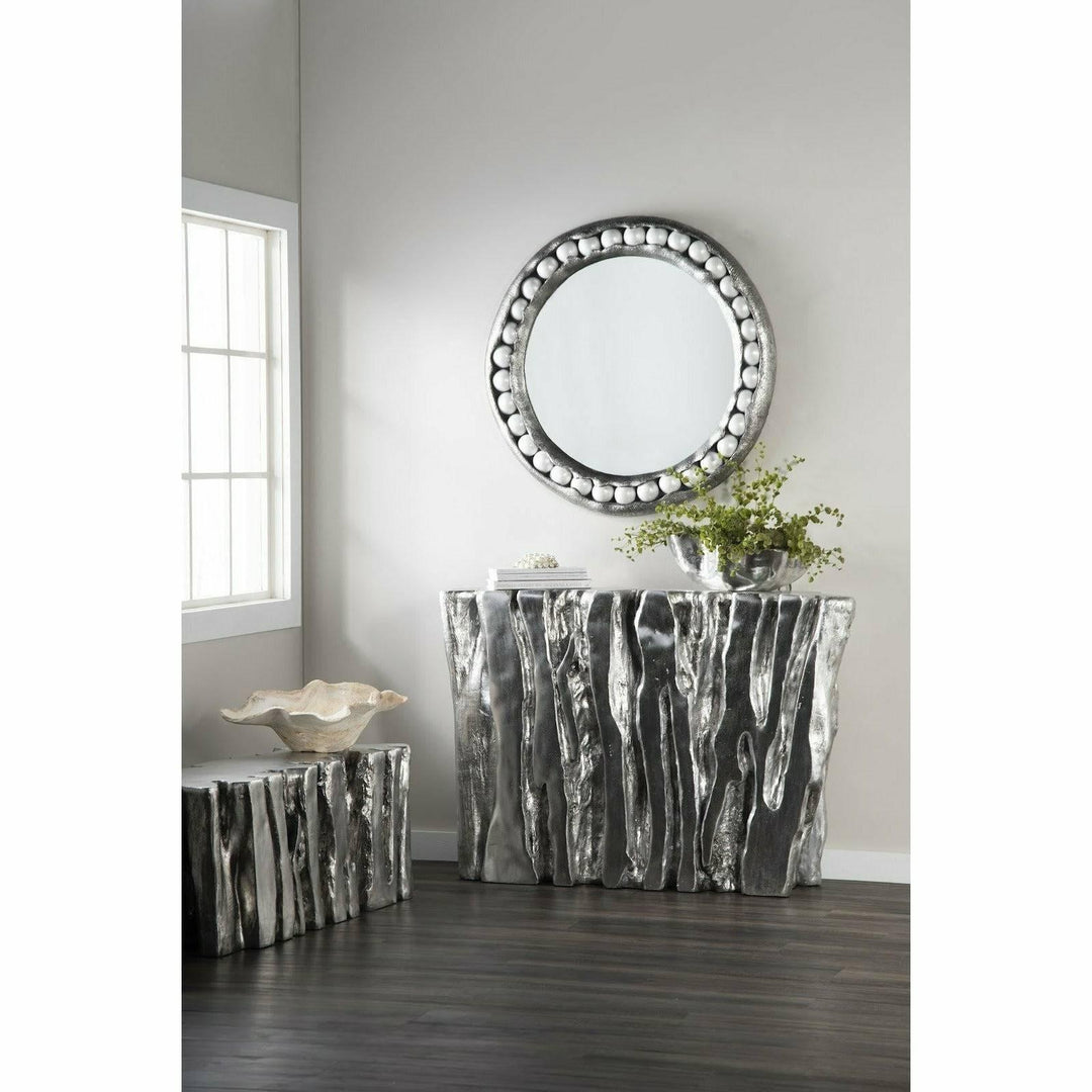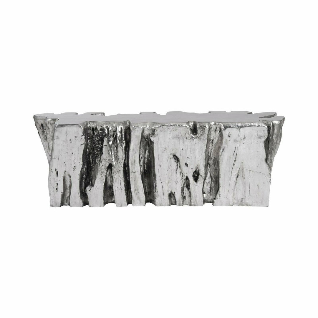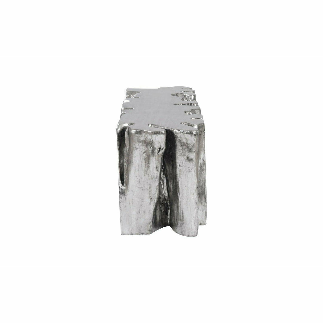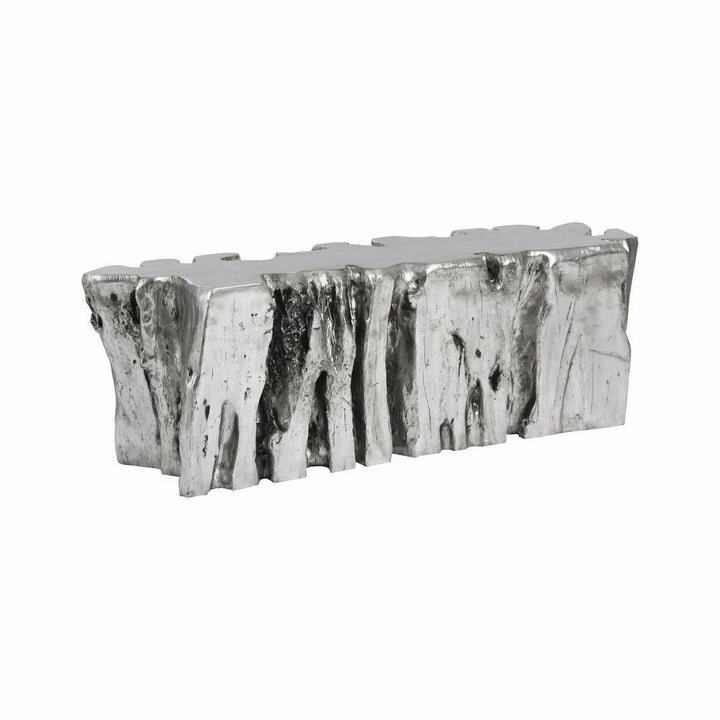 In Silver Leaf, the Freeform Root Bench gleams with a luxurious metallic finish, creating a chic aesthetic. Careful handling is recommended to maintain its delicate surface. On the other hand, the Roman Stone version embraces a natural, earthy feel with its textured finish made from natural crushed stone. The variations in the stone's tint bring out the unique character of each piece, making it perfect for outdoor and indoor settings alike.