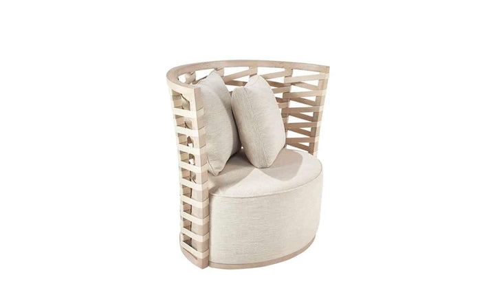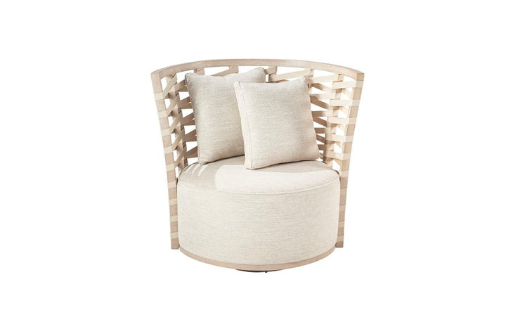 Introducing the GALAPAGOS ICONIC UPHOLSTERED CHAIR 911 (SWIVEL) - the second iconic chair from the esteemed Galapagos Collection. Drawing inspiration from the sailboats that dance around the Galapagos Islands, this chair is the embodiment of sophisticated design and meticulous craftsmanship. It boasts a contemporary flair accentuated by its unique structure, ensuring it takes center stage in any setting. When paired with the 900 model, it creates a harmonious tiered visual, making it perfect for those looking to add depth and dimension to their space. The chair comes with two decorative pillows, enhancing its luxurious appeal.