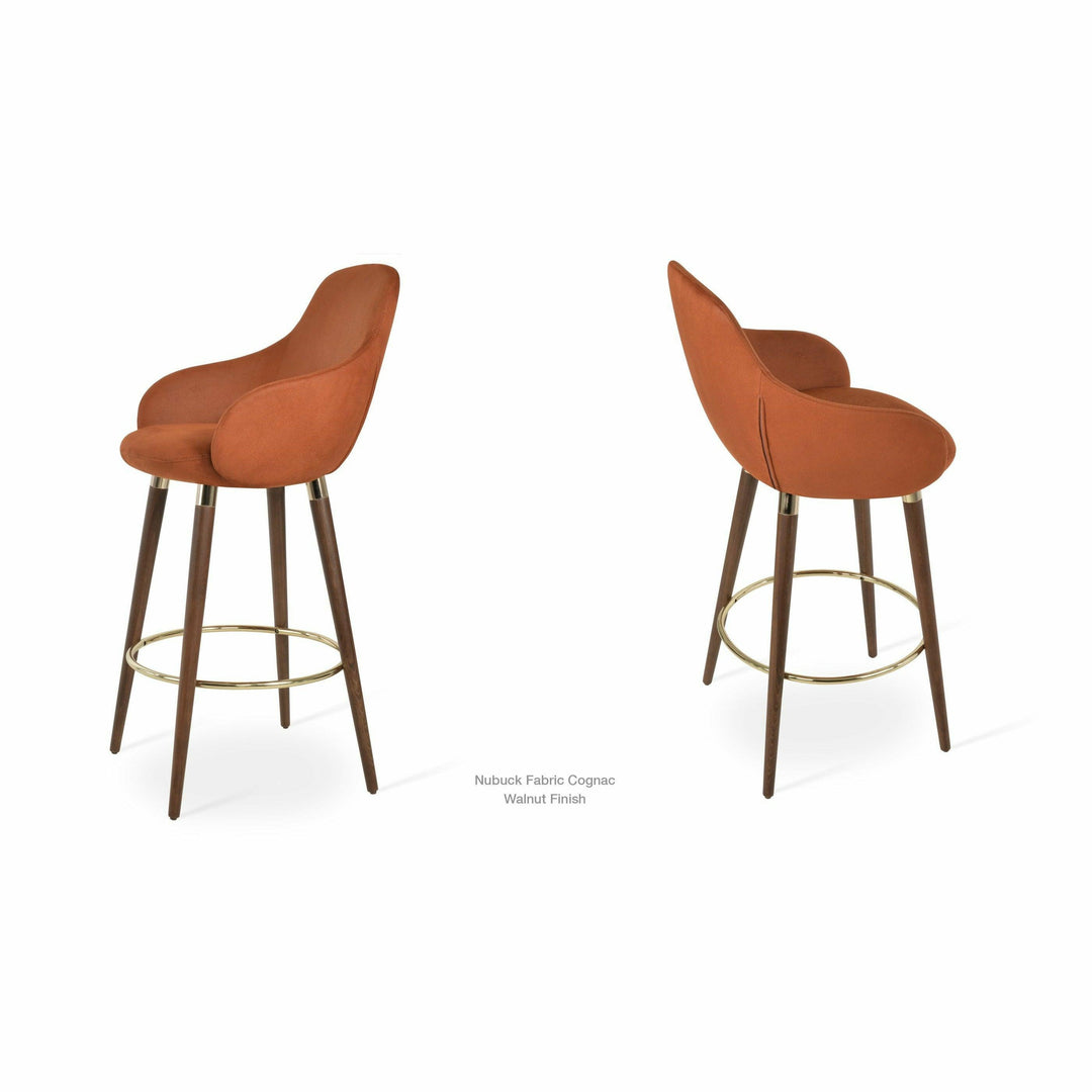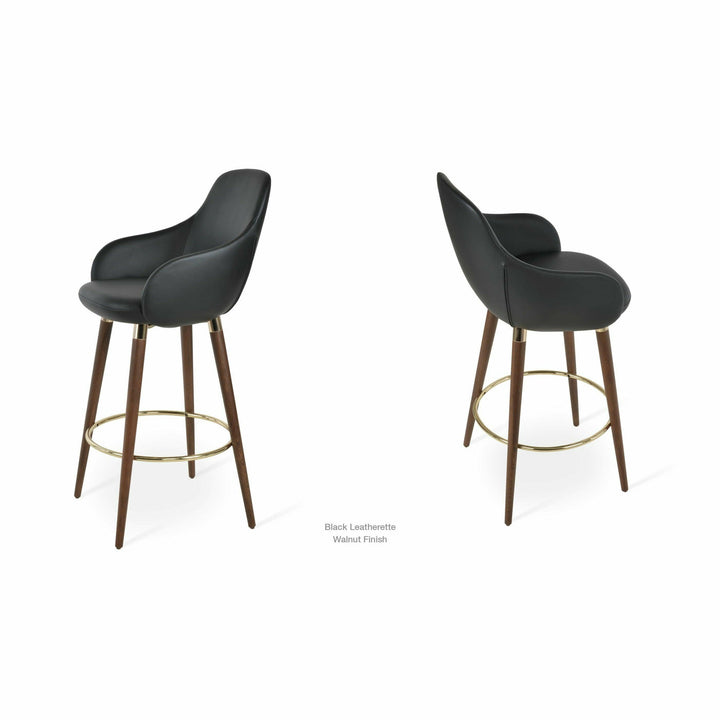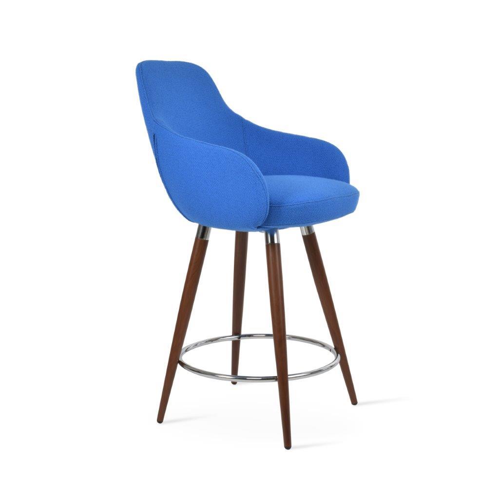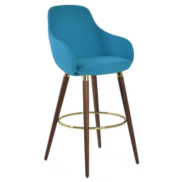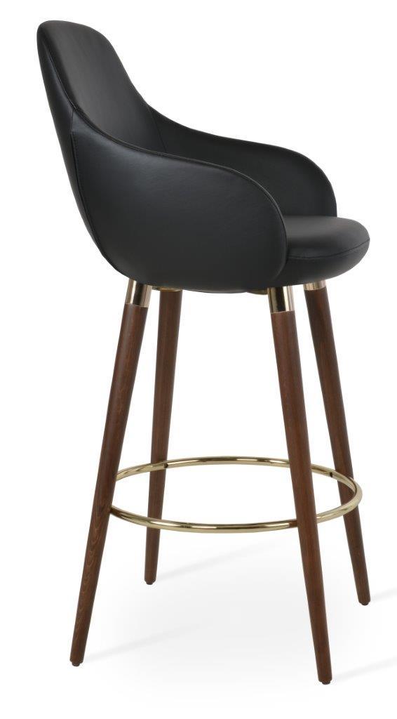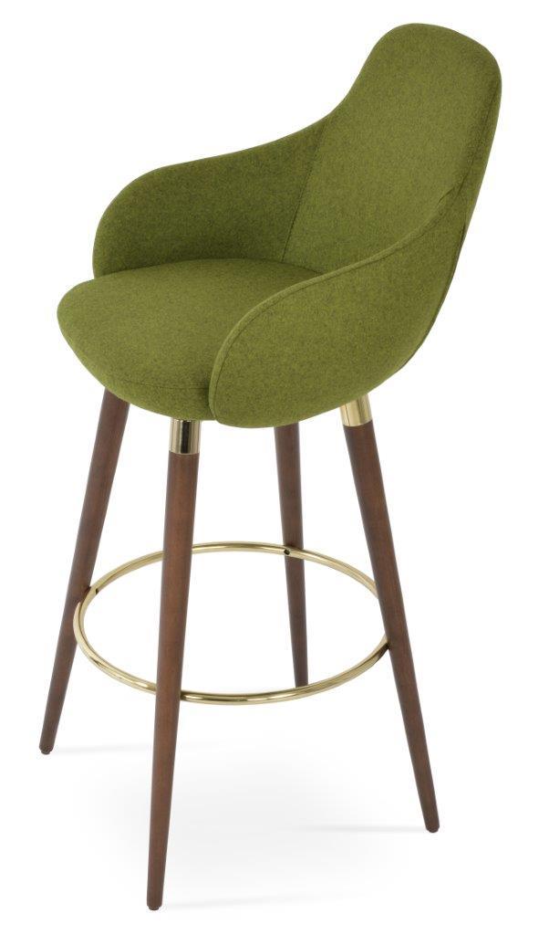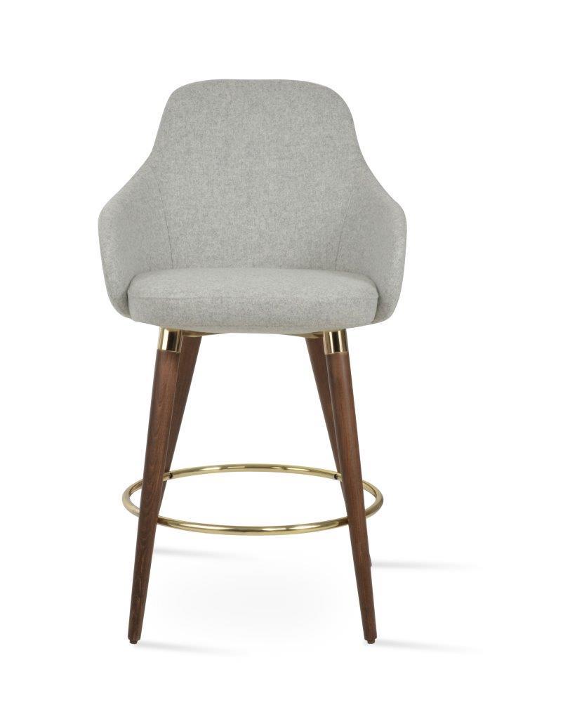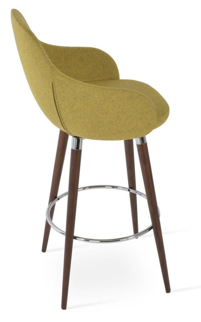 The Gazel Arm Wood Stool is a modern stool with a comfortable upholstered seat and backrest on wood legs that are available in solid beech walnut and wenge finish, Natural Ash, and American Walnut. The seat has a steel structure with “S” shape springs for extra flexibility and strength. The Gazel seat is upholstered with removable zipper-enclosed leather, leatherette, or wool fabric slipcover that can be changed with professional help. This steel frame is molded by injecting polyurethane foam. The sohoConcept team designs Gazel Arm Wood Stool, which is suitable for residential and commercial use.