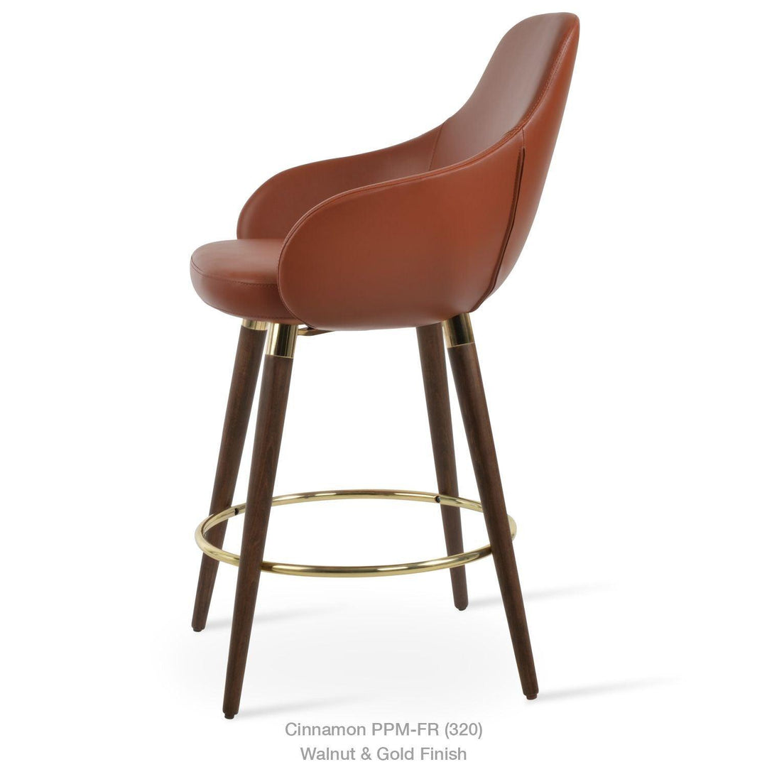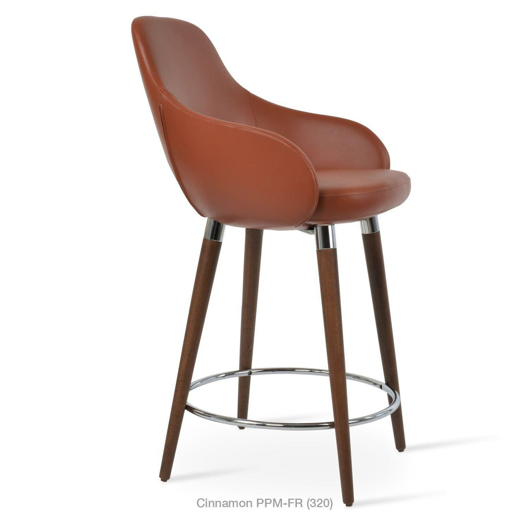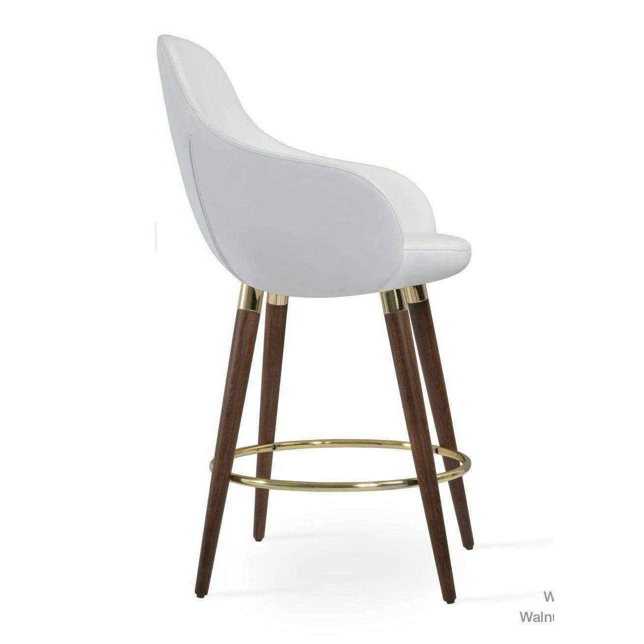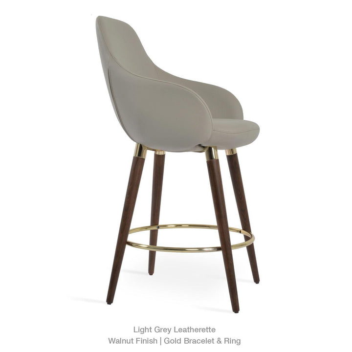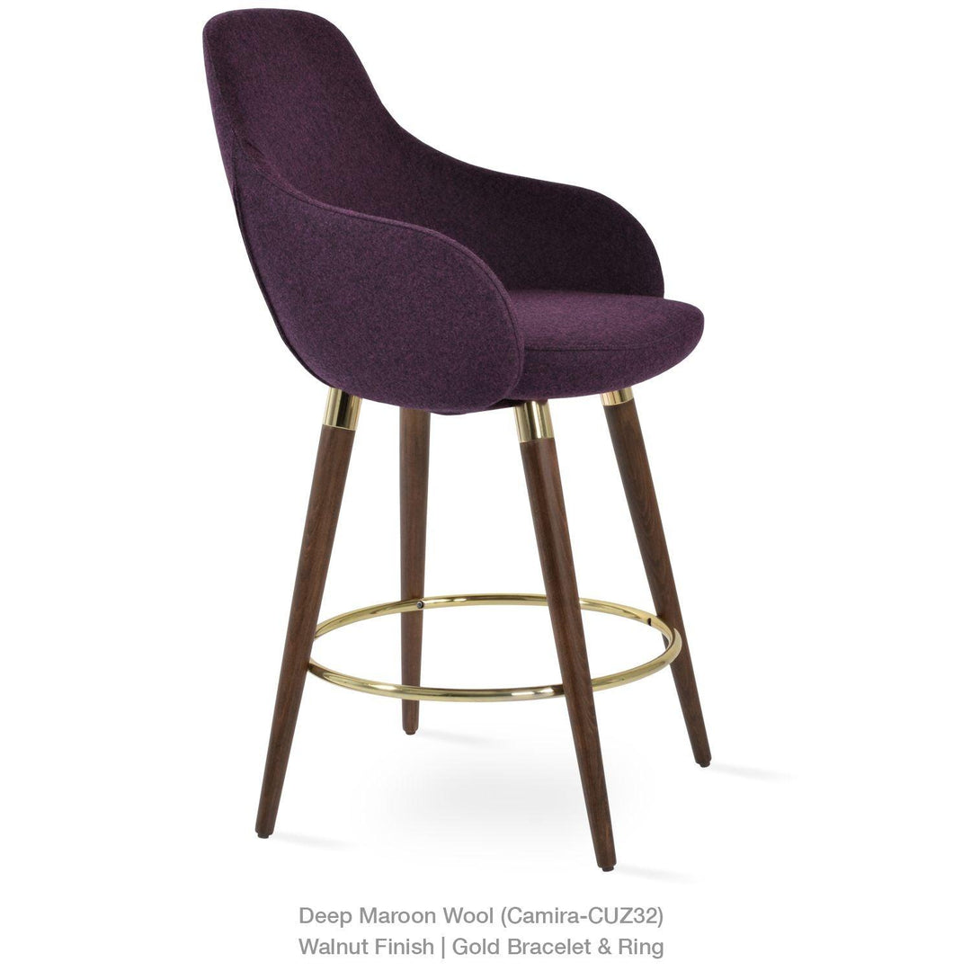 The Gazel Arm Wood Stool is a modern stool with a comfortable upholstered seat and backrest on wood legs that are available in solid beech walnut and wenge finish, Natural Ash, and American Walnut. The seat has a steel structure with “S” shape springs for extra flexibility and strength. The Gazel seat is upholstered with removable zipper-enclosed leather, leatherette, or wool fabric slipcover that can be changed with professional help. This steel frame is molded by injecting polyurethane foam. The sohoConcept team designs Gazel Arm Wood Stool, which is suitable for residential and commercial use.