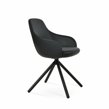 Gazel Arm Stick is a unique dining chair with a comfortable upholstered seat and backrest on a steel base available in various finishes. The seat has a steel structure with “S” shape springs for extra flexibility and strength. This steel frame is molded by injecting polyurethane foam. The Gazel seat is upholstered with a removable zipper enclosed leather, leatherette, or a wool fabric slipcover that can be changed with professional help. This contemporary chair is suitable for both residential and commercial use.