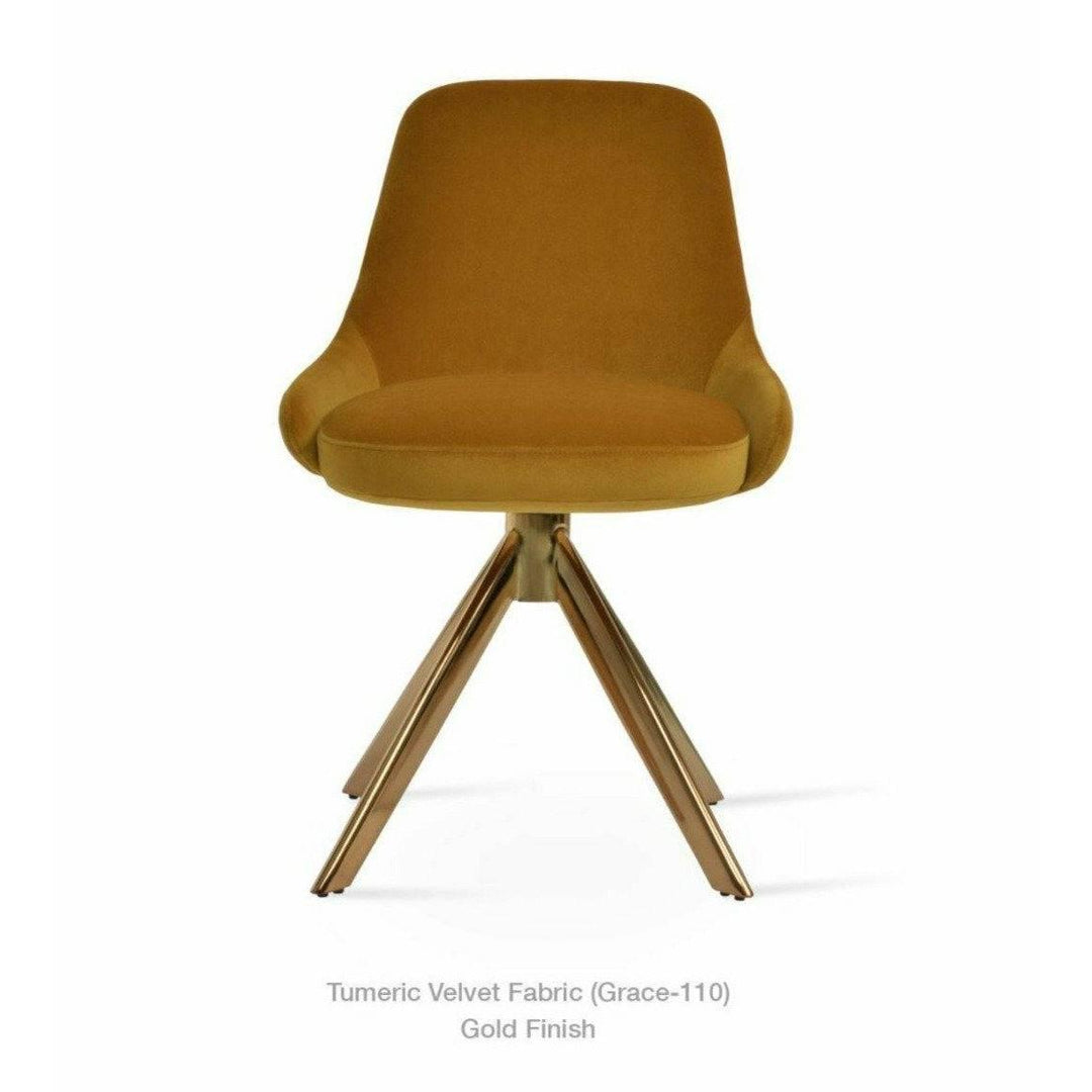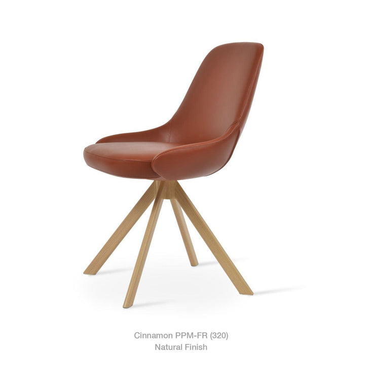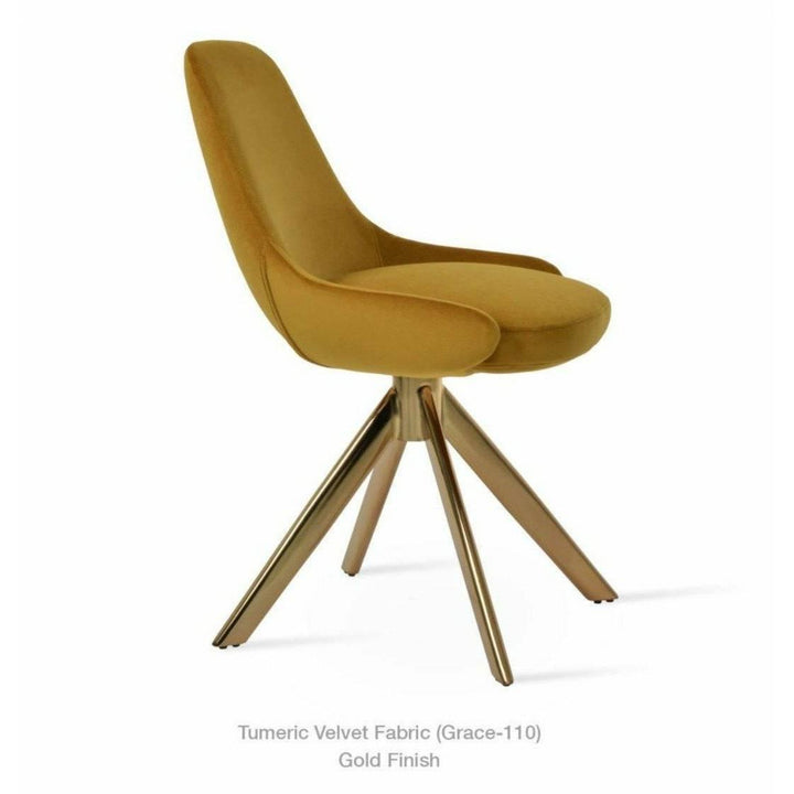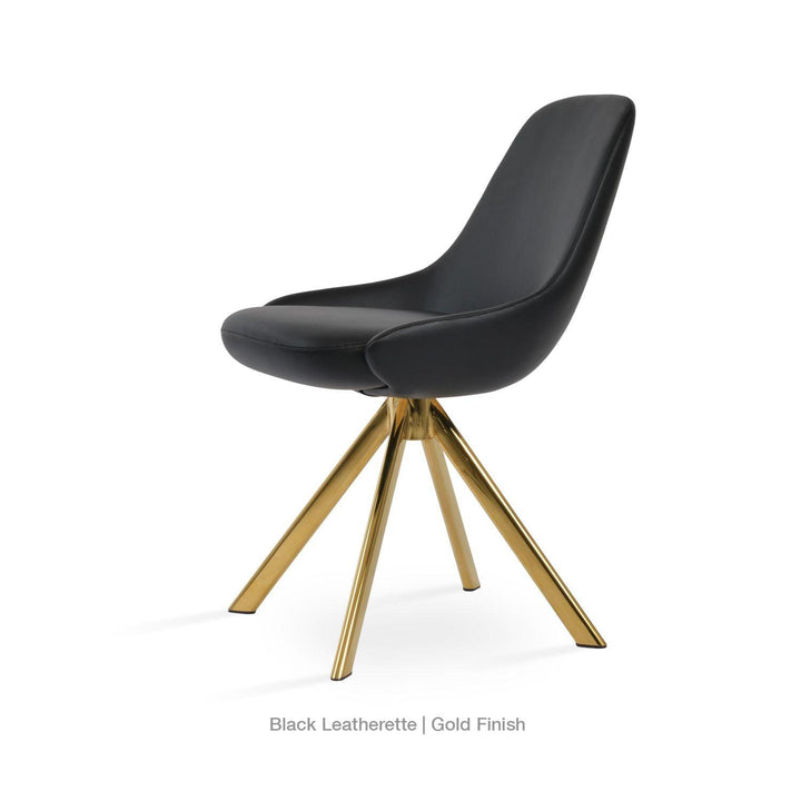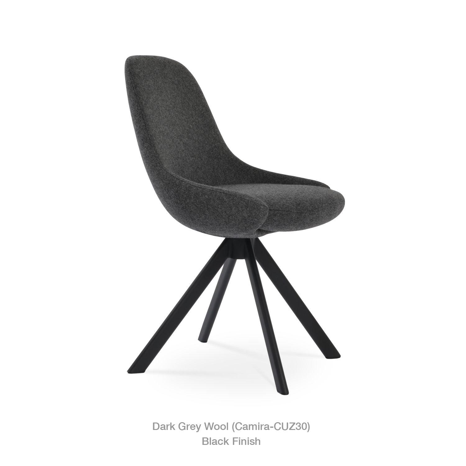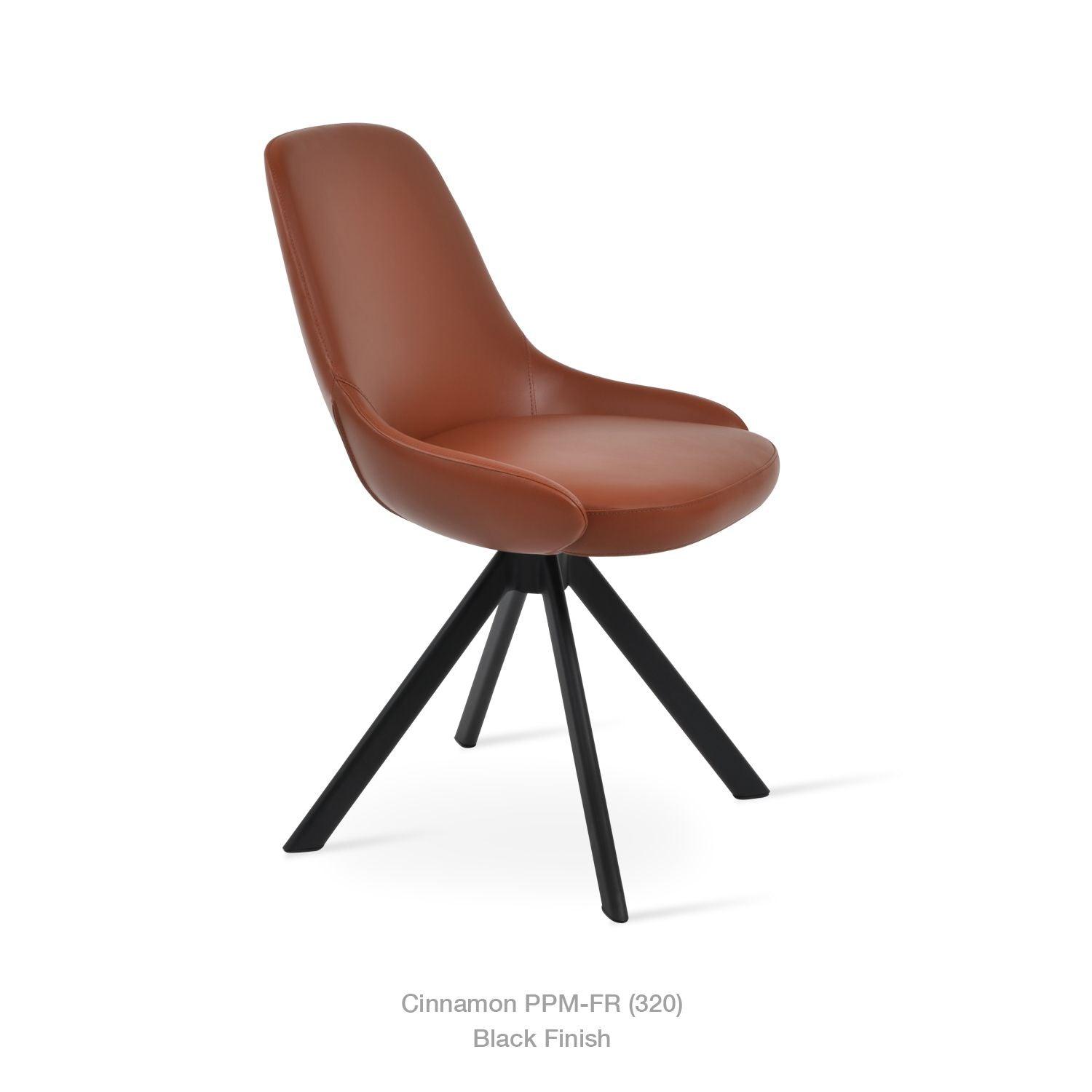 The Gazel Sword swivel chair is a unique dining chair with a comfortable upholstered seat and backrest on a steel base available in various finishes. The seat has a steel structure with “S” shape springs for extra flexibility and strength. This steel frame is molded by injecting polyurethane foam. The Gazel seat is upholstered with a removable zipper enclosed leather, leatherette, or a wool fabric slipcover that can be changed with professional help. This contemporary chair is suitable for both residential and commercial use.