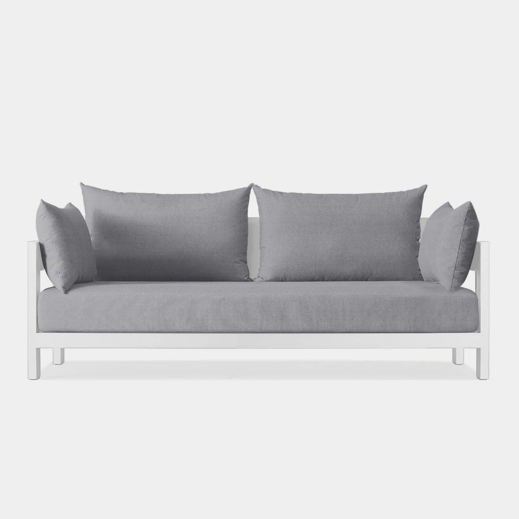 Our Hampton collection layers exciting angles with the simplicity of form for a harmonious design. The Hampton 2 Seat Sofa is an elegant update to timeless pieces — enjoy a plush bench cushion on a sling suspension, all handcrafted in square geometries of extruded aluminum. Side cushions add extra comfort, while square cut–out details add visual interest. Clean lines and versatility make this piece perfect for any smaller outdoor space.