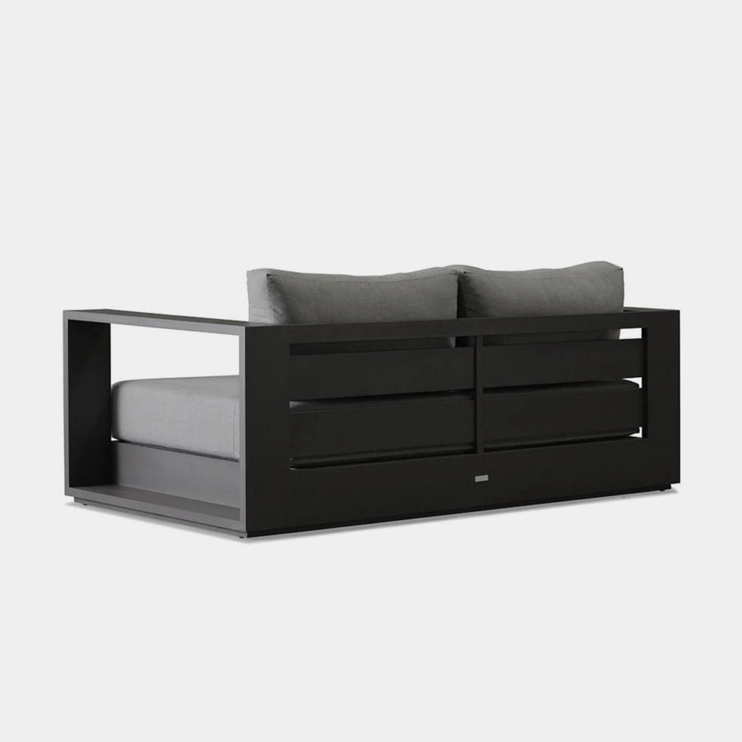 The Hayman collection is a statement of simplicity with clean angles and modern styling. Defined by its wide arms, our low–profile Hayman 2 Seat Sofa was designed to be experienced — sink into ultimate relaxation with a deep bench cushion supported by a Batyline sling suspension for added comfort, all crafted in a powder-coated extruded aluminum frame. Indoor comfort meets outdoor performance with this geometric piece made for various spaces.