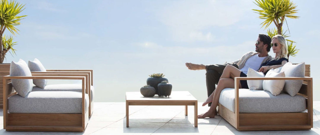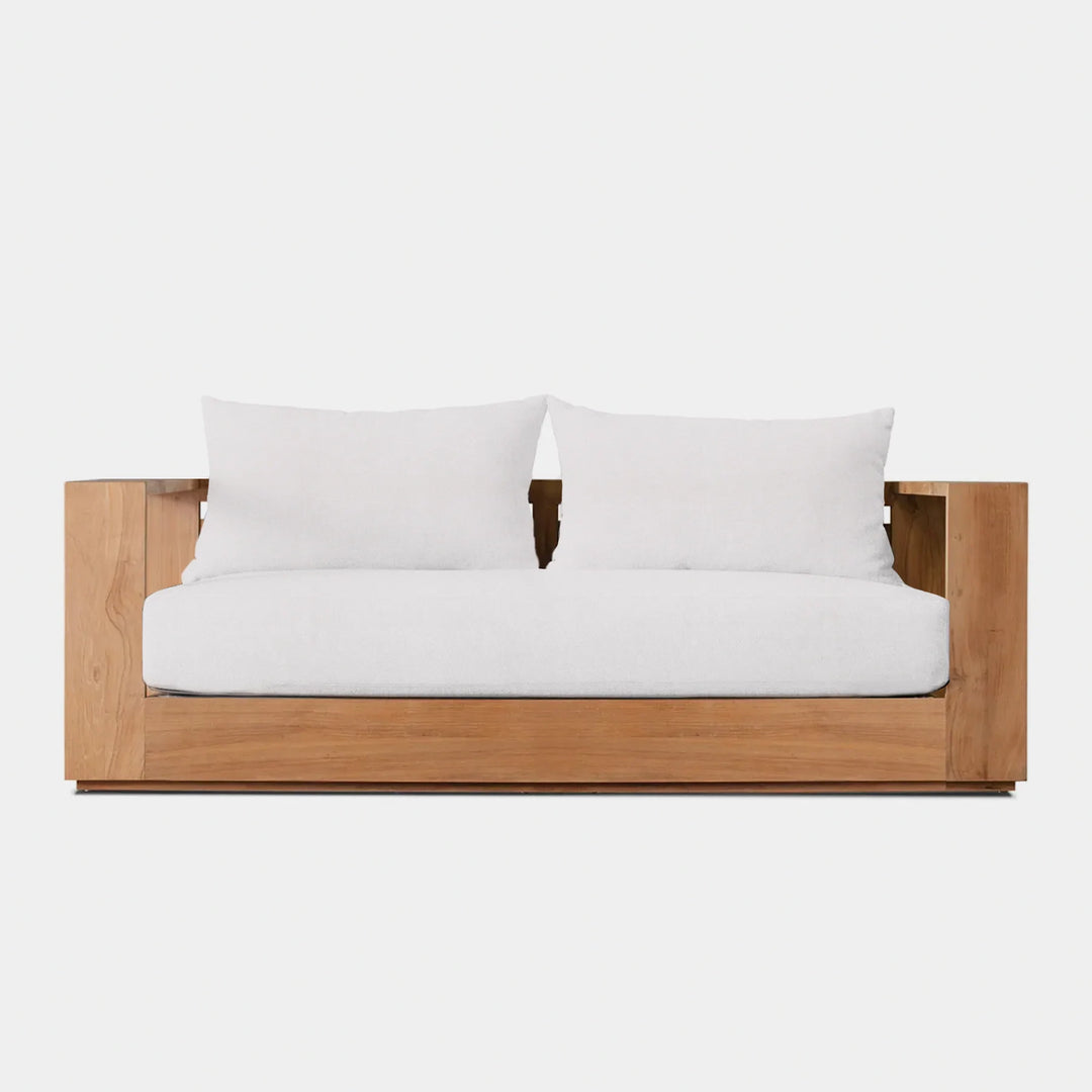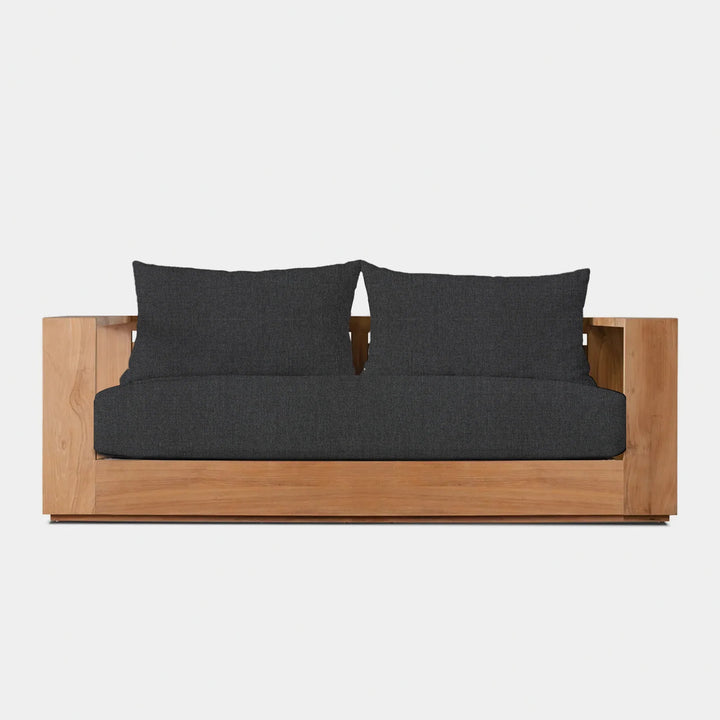 The Hayman collection is a statement of simplicity with clean angles and modern styling. Defined by its wide arms, our low–profile Hayman 2 Seat Sofa was designed to be experienced — sink into ultimate relaxation with a deep bench cushion supported by a Batyline sling suspension for added comfort, all crafted in a powder-coated extruded aluminum frame. Indoor comfort meets outdoor performance with this geometric piece made for various spaces.