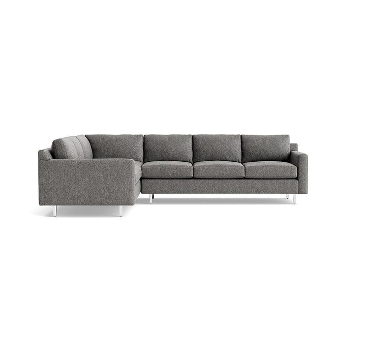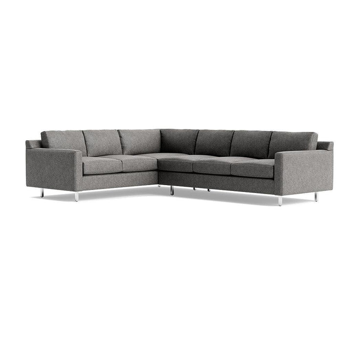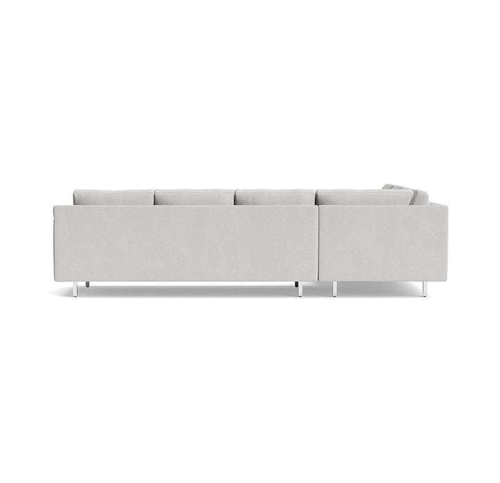 The Henderson Left Sectional by Thomas Dawn is a masterclass in refined elegance optimized for modern living. Especially crafted to conserve space, this sectional doesn't compromise on comfort. The Henderson Studio sectional is the perfect fit for urban spaces or any area necessitating a smaller footprint. The combination of a left arm sofa with a right-arm return sofa results in a harmonious and ergonomic design. Graced with square polished stainless steel legs, it also offers the versatility of square-brass or round-wood leg options. Whether you choose its fabric upholstery, leather, or a fabric slipcover, the Henderson Sectional promises a classic modern aesthetic with unbeatable comfort.